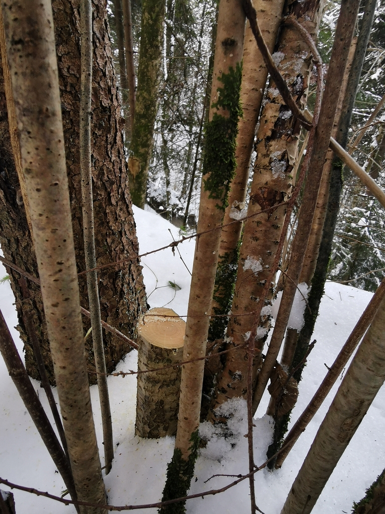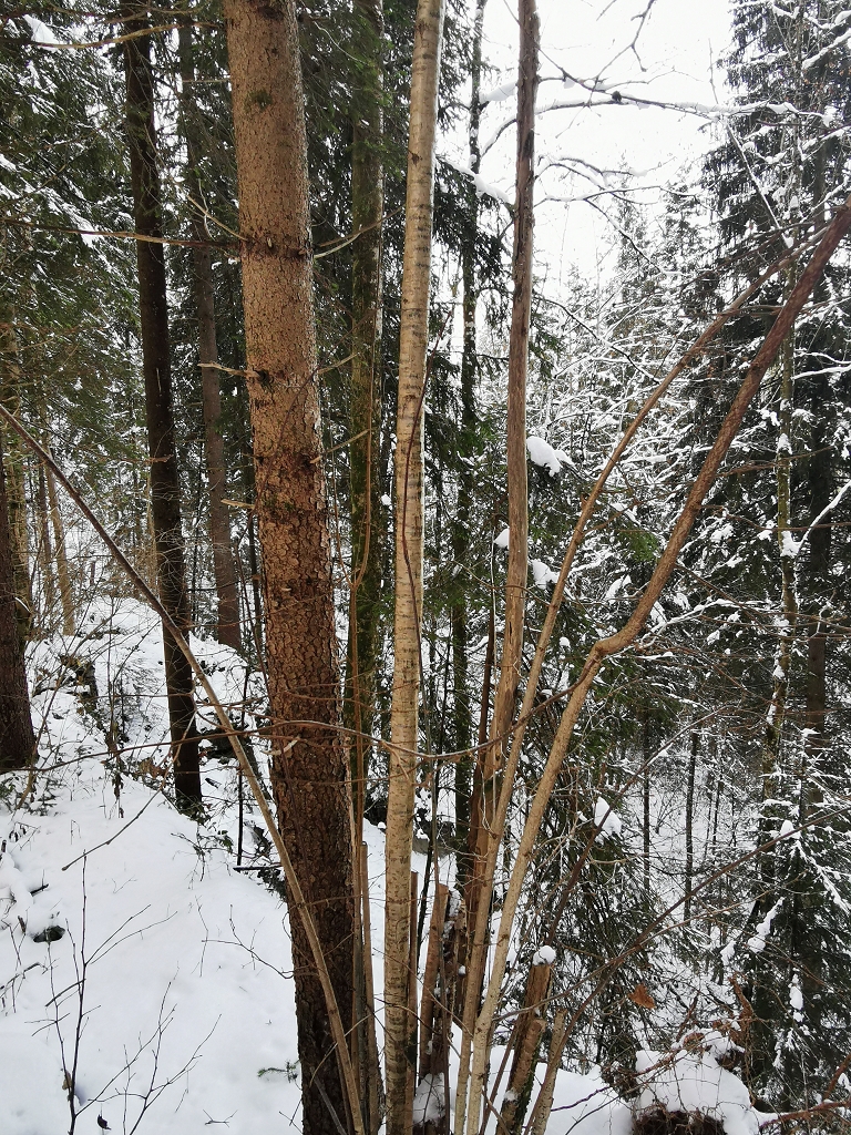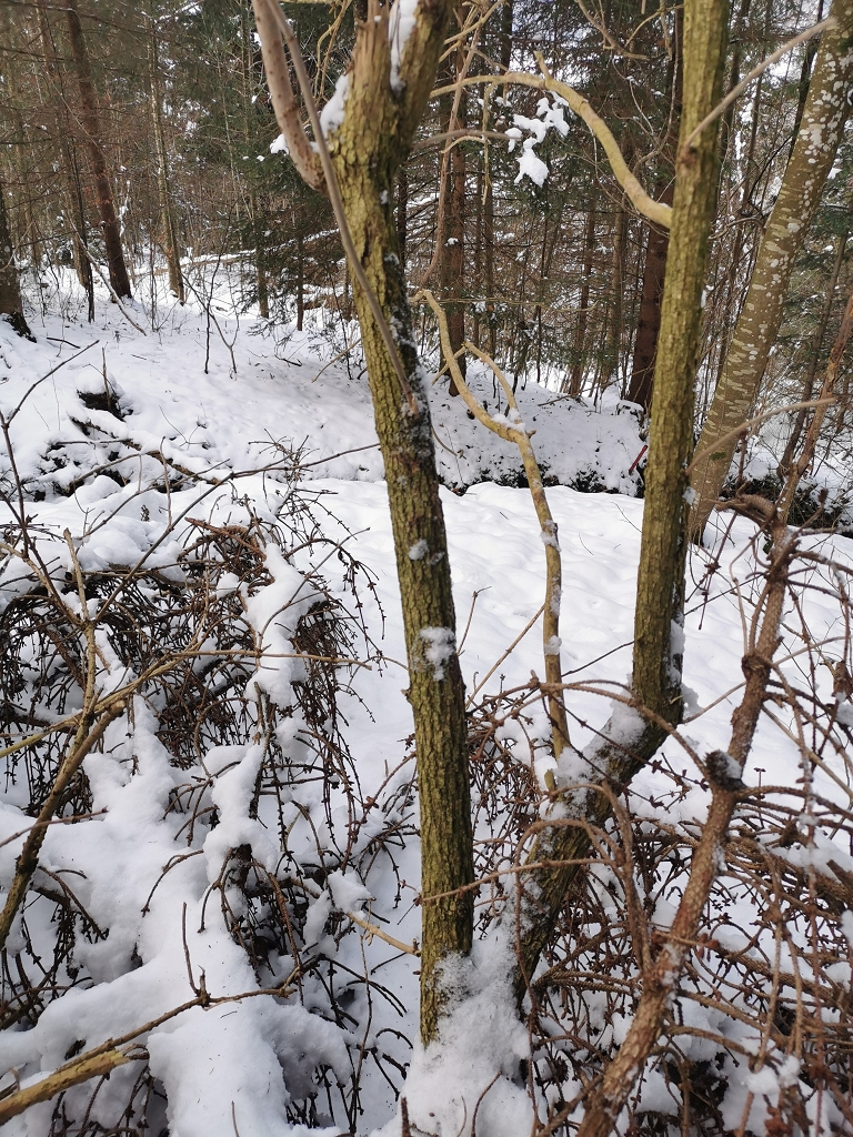 Ich war am 1. Januar im Saplingwald wo ich bisher immer meine Kandidaten fürs Saplingturnier geschnitten habe und dachte mir ich bleibe beim Alten. Habe mir wie letztes Jahr Bergahorn und Hasel geschnitten. Weil ich fern einen sehr dicht gewachsenen Hasel erwischte (mittlerweile fertig gebaut, Präsi kommt noch) und der sich nicht schlecht machte habe ich mich wieder an einer sehr schattigen Stelle umgeschaut und wieder einen erwischt. Dazu lächelten mich zwei kurze Hollerstücke an, sind hier selten lange und gerade. Ich habe gestern einen Dichtetest mit dem Ahorn und dem Hasel gemacht, Hasel hat die Dichte 0.61 und Ahorn 0.55 was wohl für den Hasel spricht.