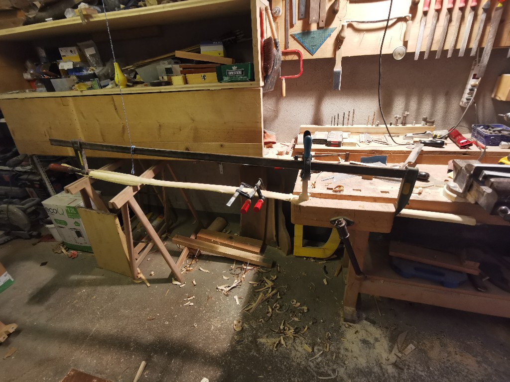 Der Bergahorn ergab zwei Stücke eines ist noch nicht entrindet, einen zusätzlichen Hasel liegt auch noch bei, ebenfalls nicht entrindet. Die zwei Hollerstücke habe ich mit der BS geteilt. Enden sind versiegelt und alle warten geduldig bis sie wieder unter s Messer dürfen