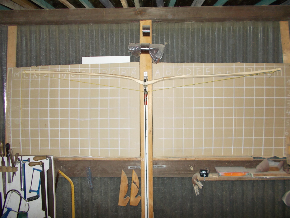 Bei der Wasserverlustmenge kann das Holz noch nicht ausreichend trocken sein, um zu tillern. Du handelst Dir unnötig viel Set ein, wenn Du jetzt schon anfängst zu tillern - ich würde den schönen Stave noch liegen lassen.