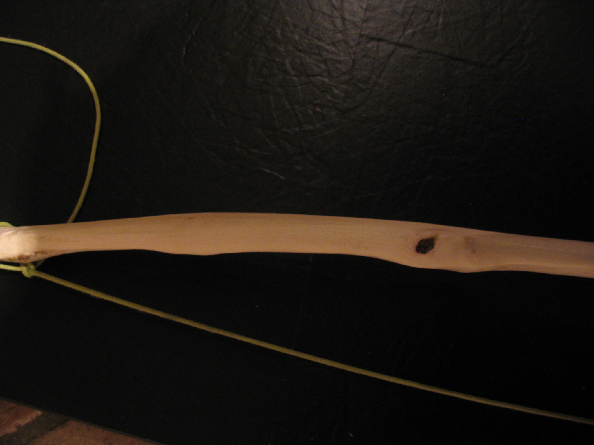 Ach ja die kleine Faulstelle vom Anfang konnte ich ganz runterarbeiten , und der Totast am oberen Wurfarm konnte ich auch so weit rausarbeiten , daß sie nicht mehr relevant ist. Man sieht nur noch ein kleines Löchlein. Die Auflagen für die Nocken habe ich aus Rehgeweih gemacht und mit wasserfestem Holzleim drauf geleimt. Sehnenlage ist leicht nach links versetzt, was aber nicht weiter schlimm ist da ja die Pfeilauflage auch links am Bogen ist. Bin momentan bei ca. 55 cm Auszug und 40 bis 45lb' s und einem Gewicht von ziemlich genau 700 g,