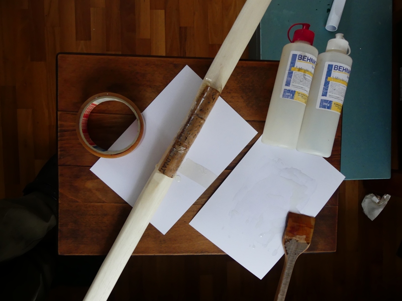 Weil der Griff haptisch ein bisserl unkomfortabel dünn ausgefallen ist, hab ich ihn mit ein paar Korken etwas aufgefüttert...