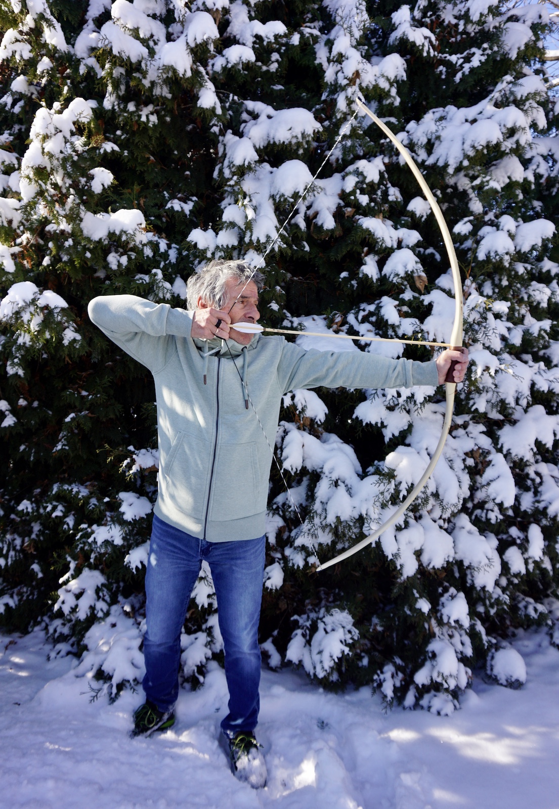 Hartriegelstabbogen, fertiigestellt am 17.01.2021, wollte aber noch weitschiessen, und ich brauchte auch noch meine Frau um das Vollauszugsfoto herzustellen, heute morgen hatte sie endlich Zeit.