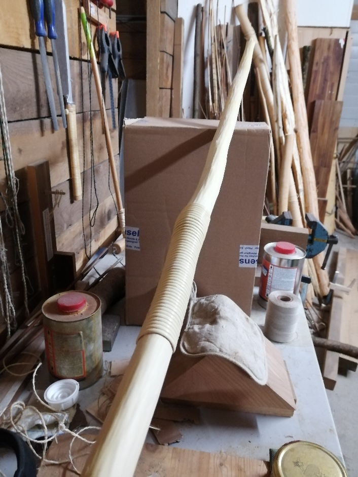 Und nein, eben kein Handschock; ist echt witzig und total angenehm. Das Längenverhältnis habe ich von meinem Hankyu übernommen. Ist ca. 0,61/1 unterer/oberer Wurfarm, wenn ich es noch recht in Erinnerung habe. Das messe ich am Montag nochmal nach.