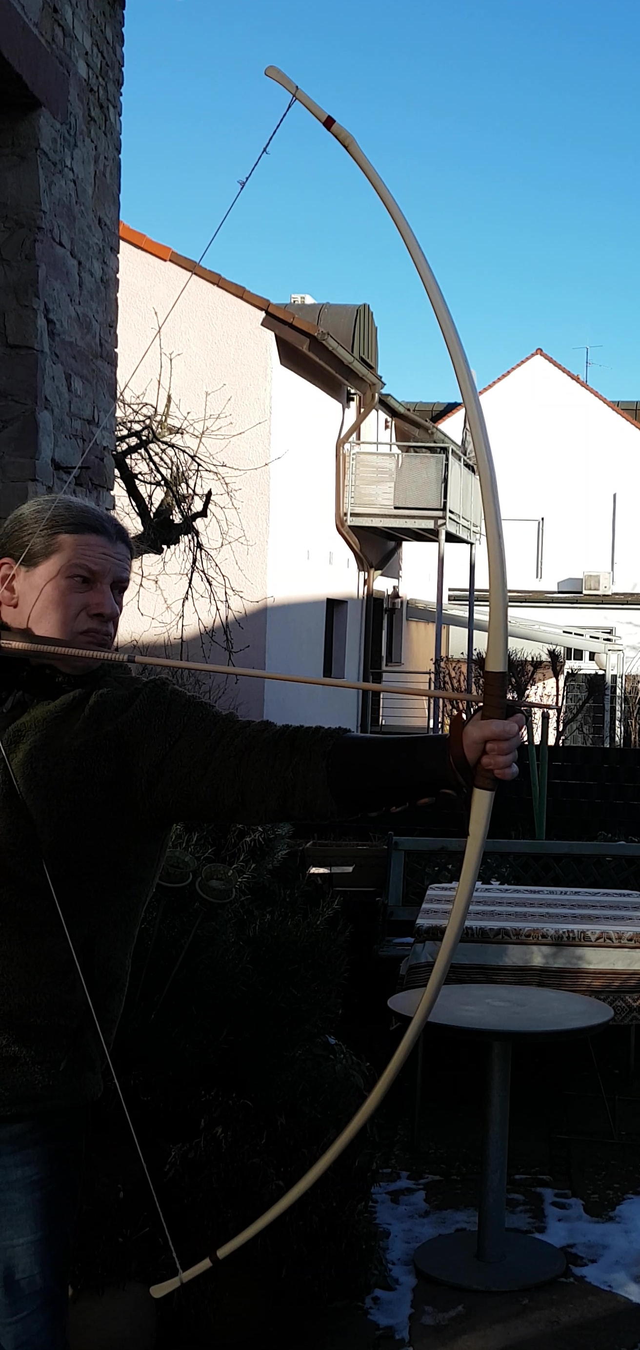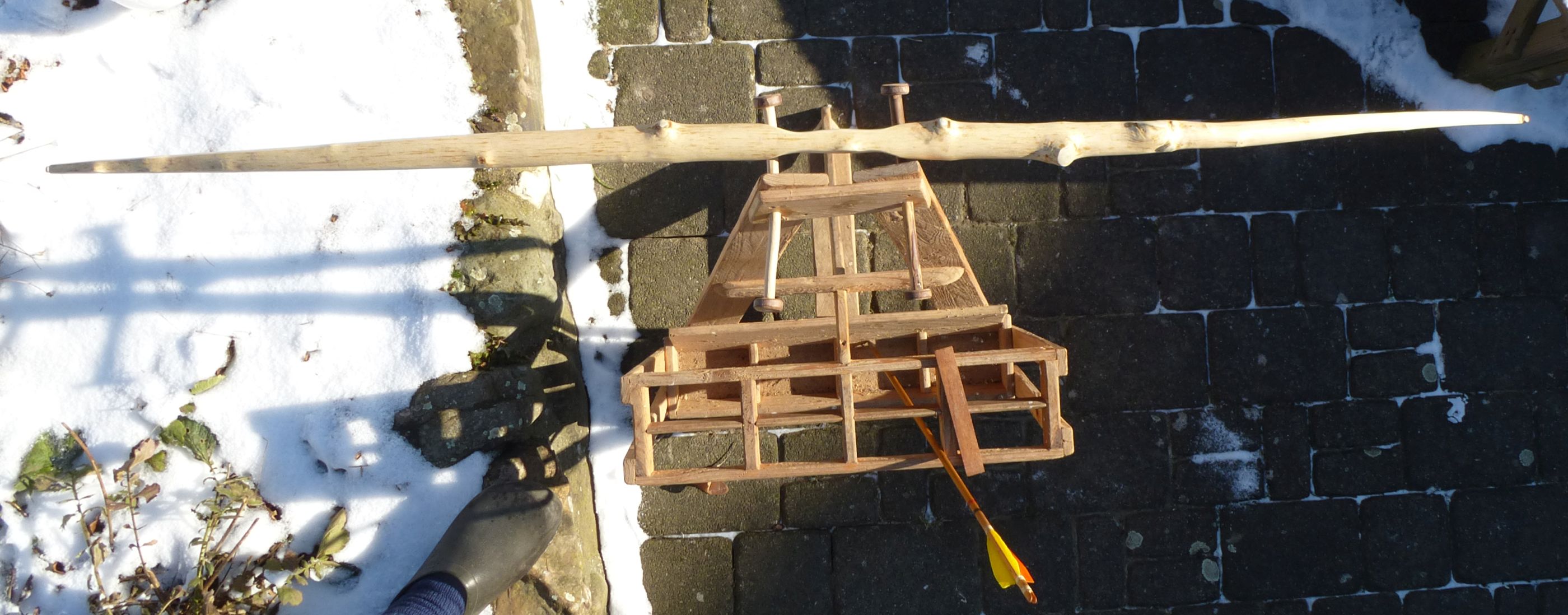 Hartriegelstabbogen, fertiigestellt am 17.01.2021, wollte aber noch weitschiessen, und ich brauchte auch noch meine Frau um das Vollauszugsfoto herzustellen, heute morgen hatte sie endlich Zeit.