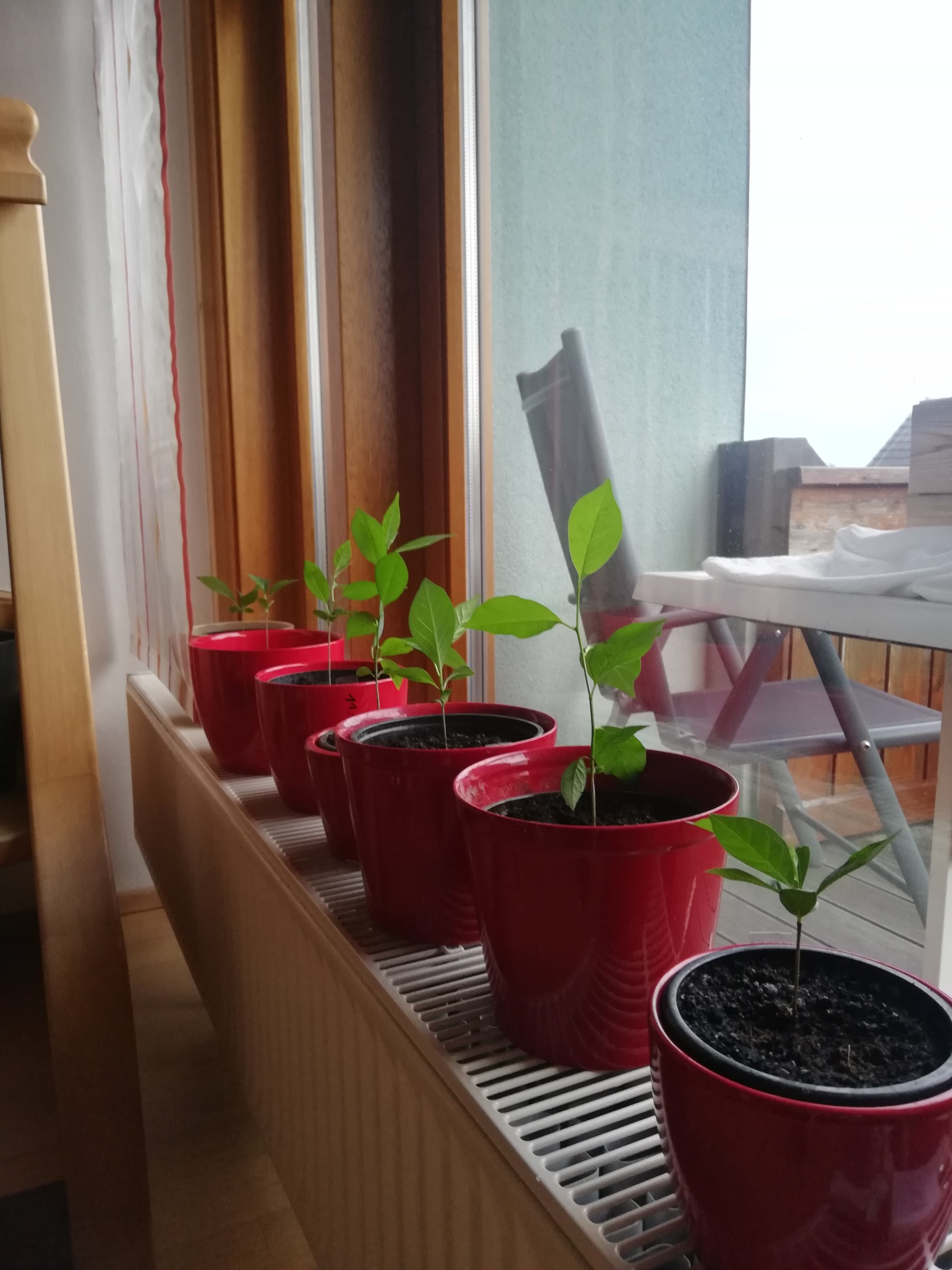 Der Zeitpunkt sie auszusäen war im Januer wohl zu früh. Inzischen erkenne ich keinen Unterschied welches die älteren Bäumchen sind.