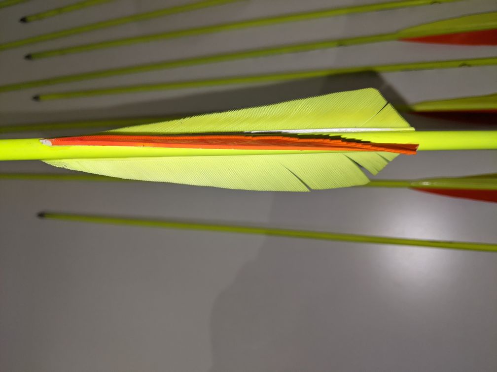 @vertrue; Trotzdem, die Federn bleiben länger am Pfeil, wenn der Kiel nach vorne hin flach geschliffen und gewickelt ist. Solltest Du zum Standard machen.