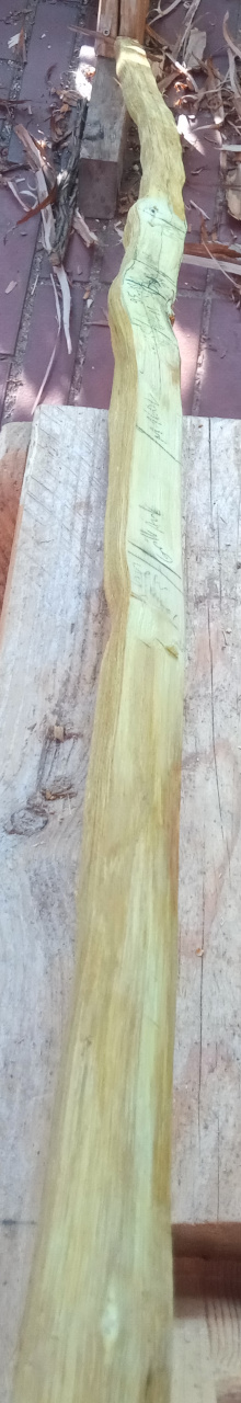 da meine Holzvorräte bis auf zwei Osage-Staves stark geschrumpft sind (nur noch Reste, die ich lieber zersäge als mich zu stressen) und ich aus den Osage-Staves möglichst viel herausholen möchte UND weil fatz erwähnte, dass es auch etwas schmäler geht, habe ich mich an den ersten Osage-Stave gemacht und möglichst Arbeitsschritte dokumentiert, die ich hier vorstellen möchte. Inklusiver aller häßlichen Details, möglicher Fehler und nicht unbedingt geradlinigem Ablauf (ok, durch Vorstellung etwas geordnet)