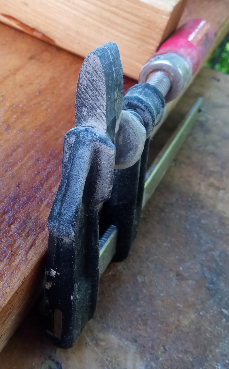 Dann war da am Anfang des Recurves eine seitliche Welle, die wollte ich begradigen. Gelang zwar aber meine Halterung, um die Form der Recurves beizubehalten war unzureichend (die B1 Schraubzwingen vom Toom sind billig aber das ist auch alles
