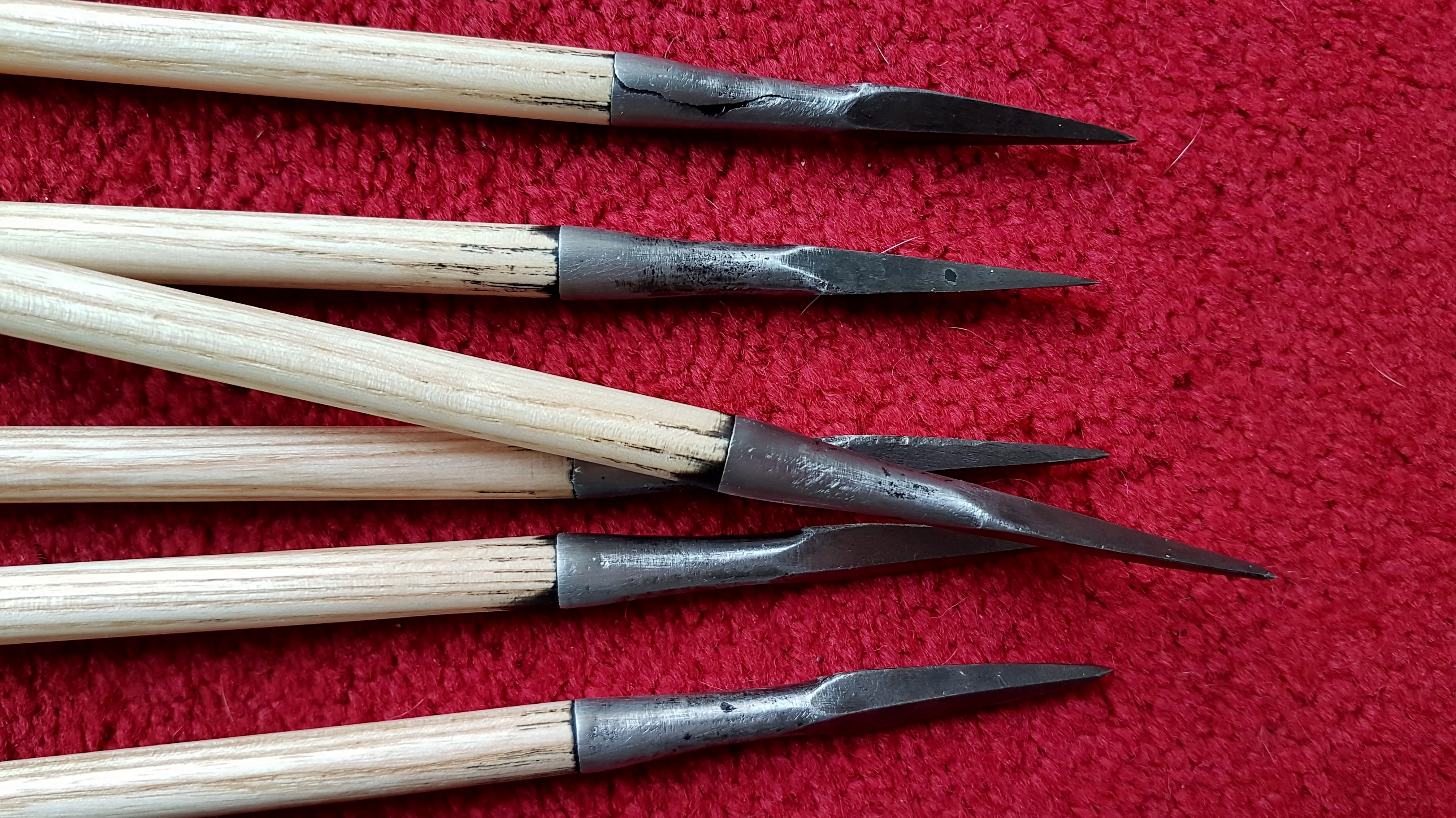 Hmm, gute Frage, das war mir gar nicht so bewusst, hab' bis jetzt alle so gebaut. Aber jetzt wo Ihr das fragt - bei den Pfeilen aus dem Bogenbaukurs vor ein paar Jahren war der Abstand weniger als 1,5 cm, also muss es tatsächlich einen Grund für mich gegeben haben, das anders zu machen...