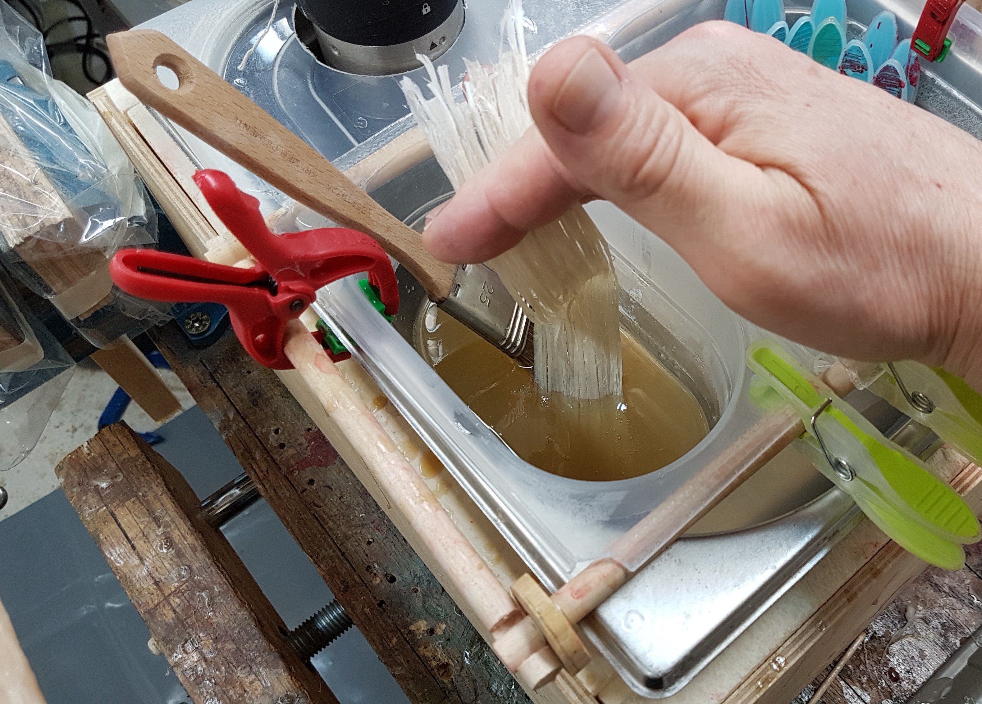 restlicher Leim, zu gut zum entsorgen - wird getrocknet und ist hervorragend für Wicklungen geeignet