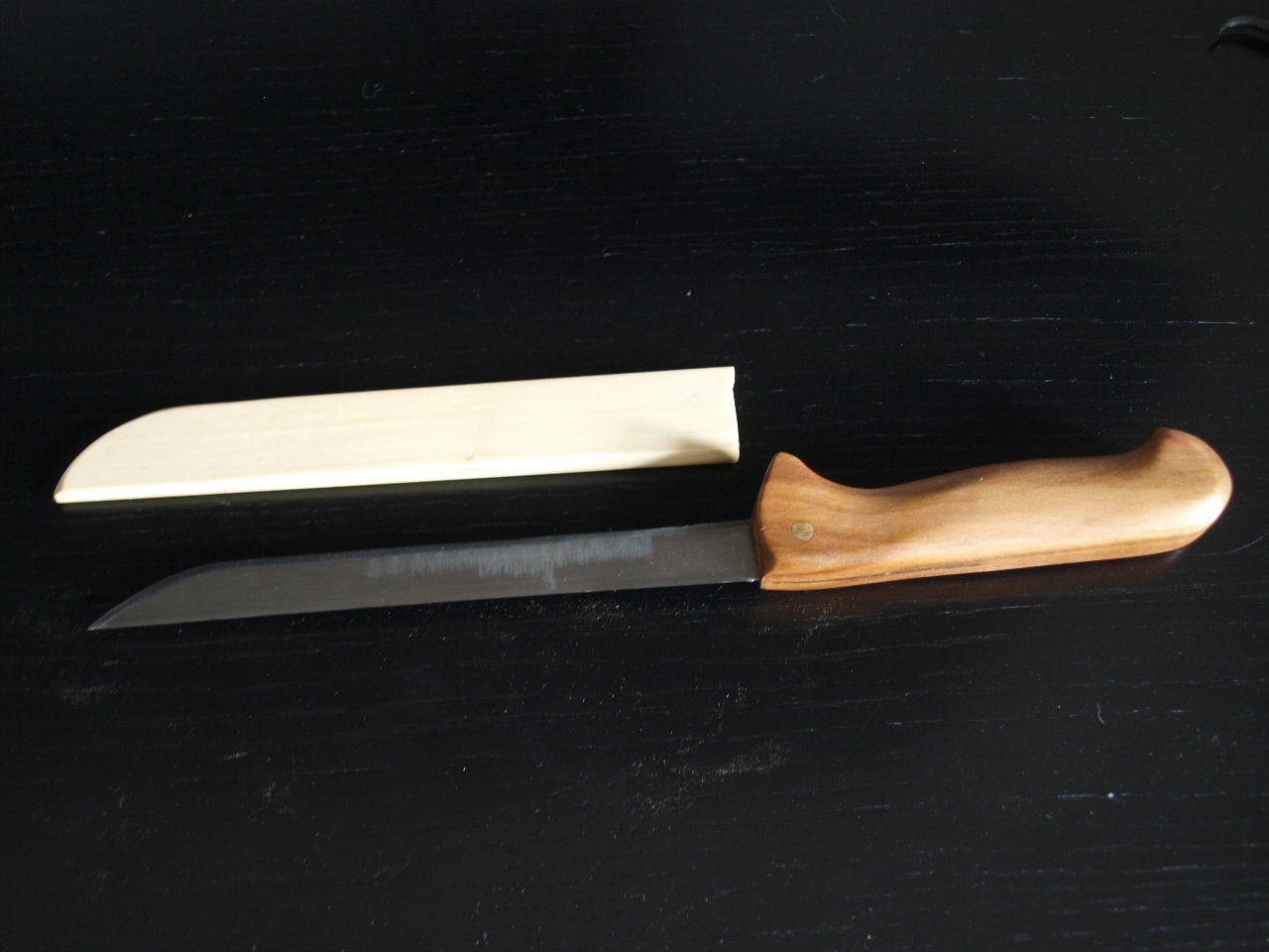 Die Scheide war ein Schnellschuss, aus drei Teilen zusammengeleimt. Die innere Schicht wurde als Negativ vom Messer ausgesägt.