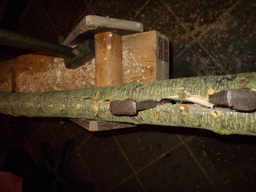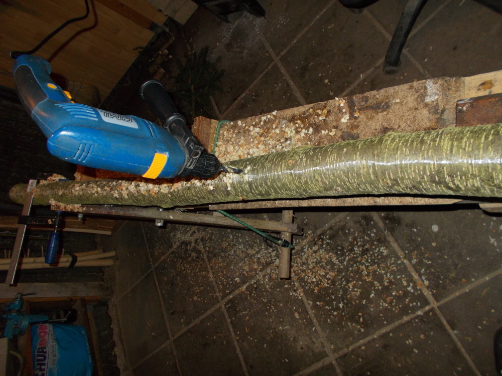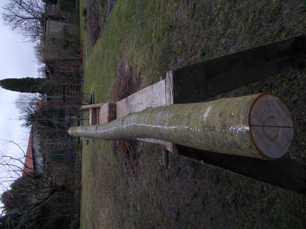 Der Baum ergab 4 Stäbe, alle um die 2m lang, der unterste steht ganz rechts, der soll es dann auch werden.