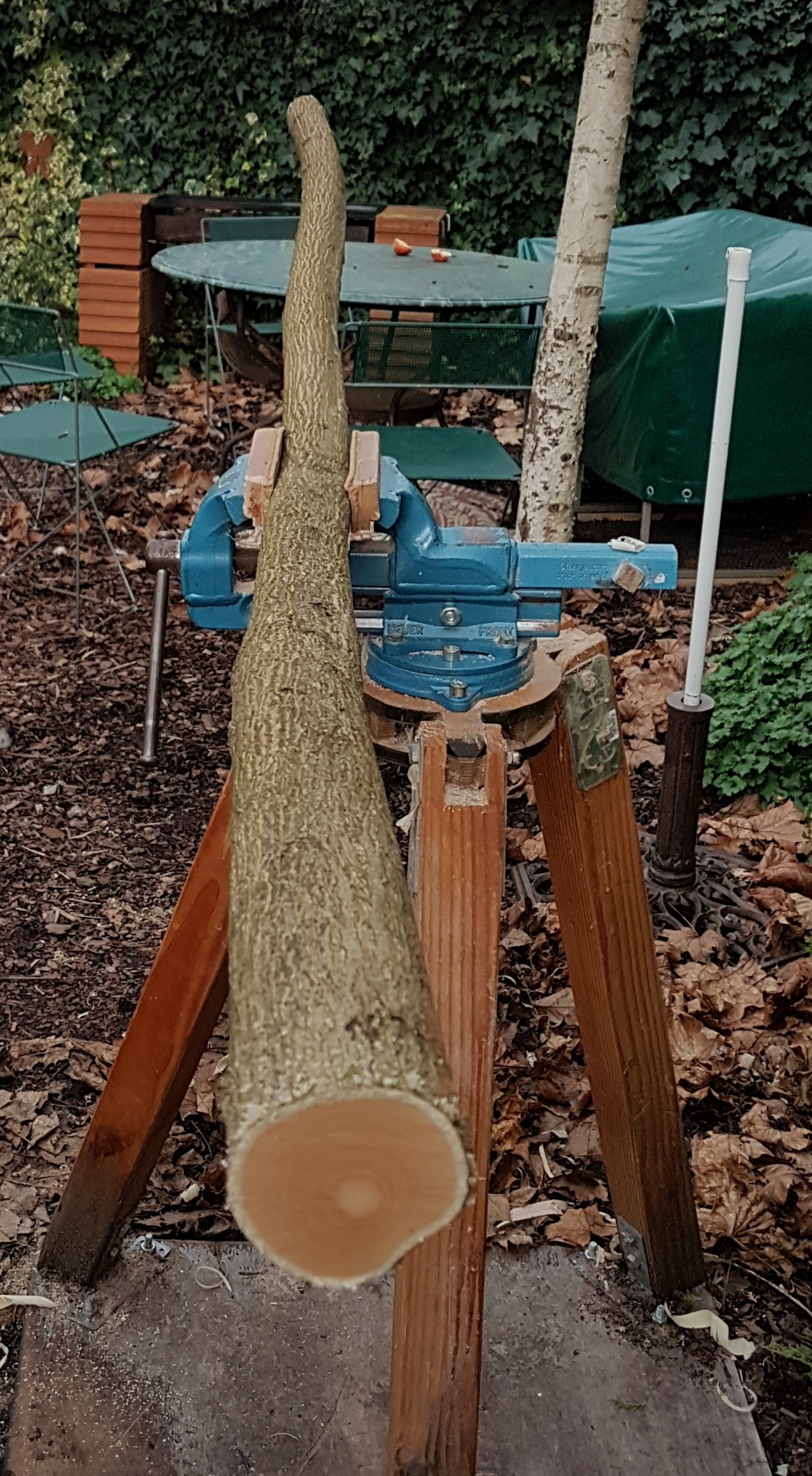 - hier gekürzt auf ca. 215 cm und die Enden mit Holzleim eingeschmiert