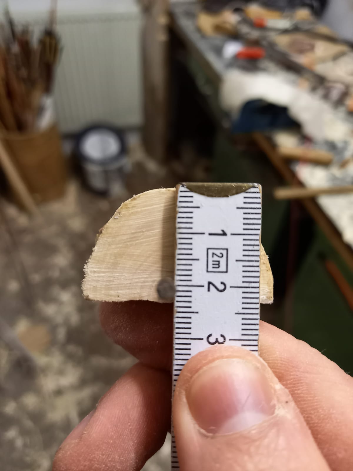 Sodele.. hab den Bauch schonmal rund gestaltet und nochmal bissl Holz abgetragen. Hat in den 2 Tagen nochmal 30g Gewicht verloren.