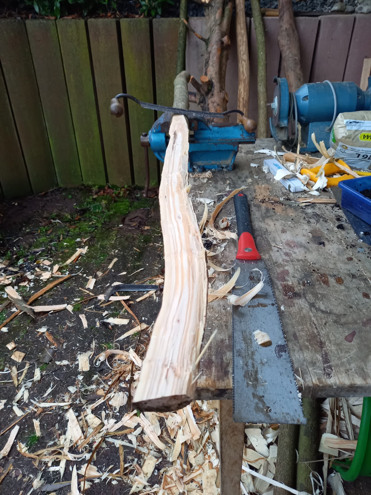 Hallo, warum hast du hier nicht gleich die komplette Seite der Wurfarme runtergearbeitet und entrindet?