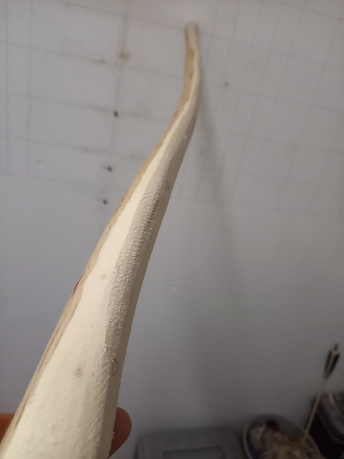 Nach 1 Woche ( 500g Gewichtsverlust) hab ich dann den Bogenbauch bis zum Markkanal runtergeschafft und im Griffbereich mit Leim versiegelt