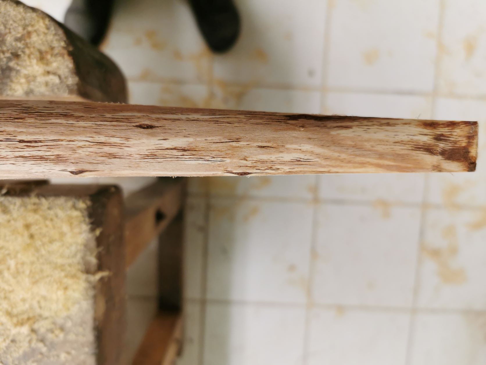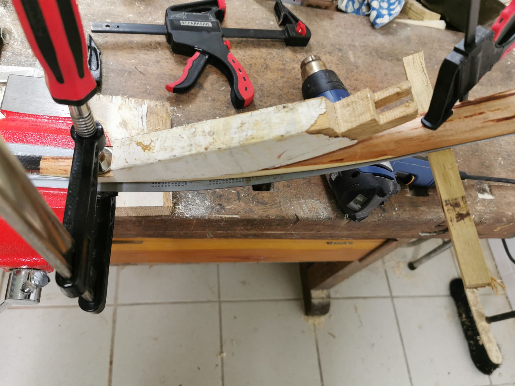 Also habe ich Flipps reingeföhnt und dabei versucht zu begradigen. Das Stück ist noch eingespannt. Morgen schaue ich mir das Resultat an.