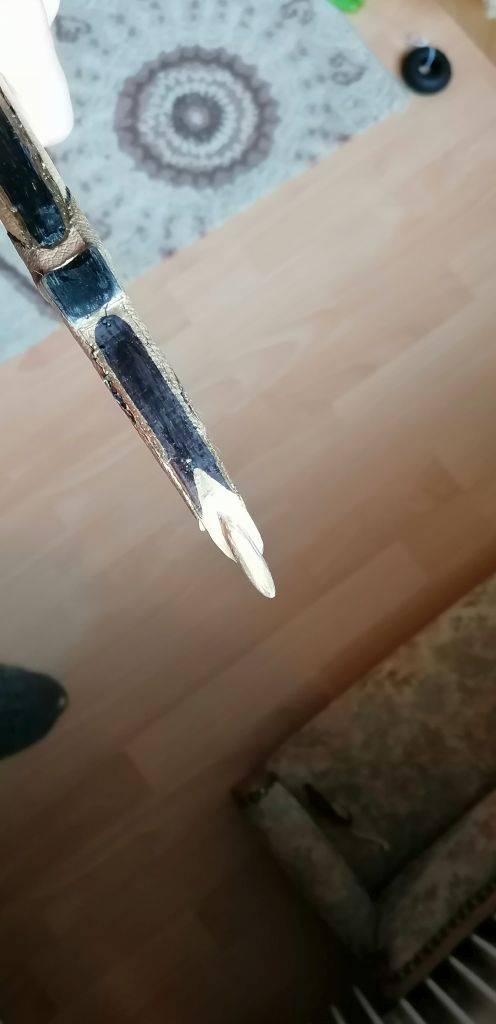Heute bekam der Griff und die Enden ihr Design... Es war doch alles sehr fein und daher bin ich auf Stifte umgestiegen. Das Ergebnis ist gut, aber nicht perfekt. Vor allem weil ein Stift ausgelaufen ist...