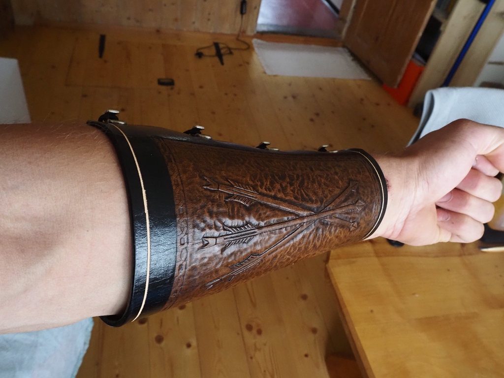 Mein erster Armschutz ist zwar kein so künstlerisches Stück, aber dafür passt er wie angegossen und trägt sich sehr bequem.
