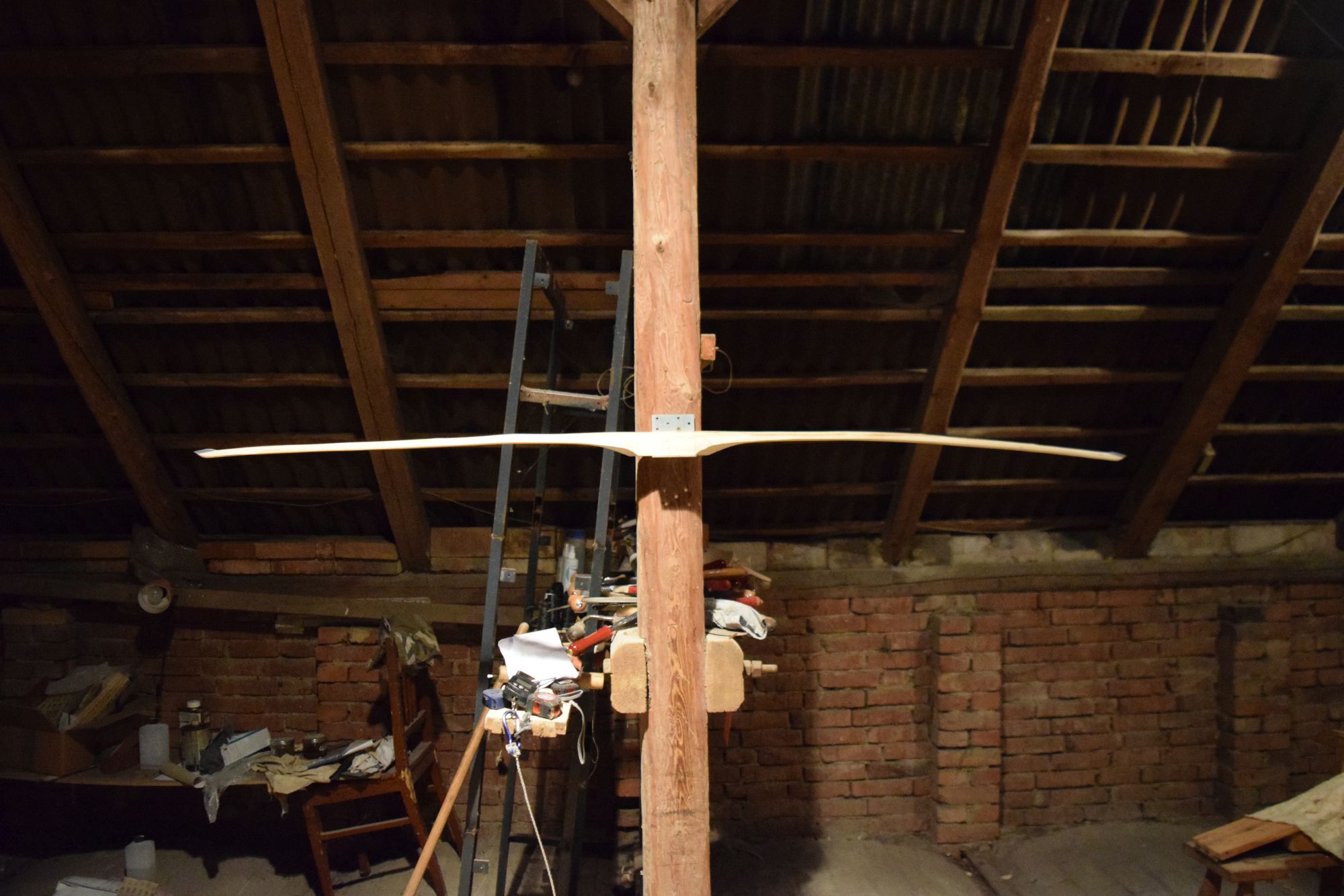 Mein finales Urteil fällt jetzt etwas positiver aus. Der Bogen wirft ordentlich (wobei auf die kurze Distanz alles schnell wirkt. Ich teste morgen nochmal draußen) und des ist so möglich, innerhalb kürzester Zeit einen langlebigen Bogen zu bauen.