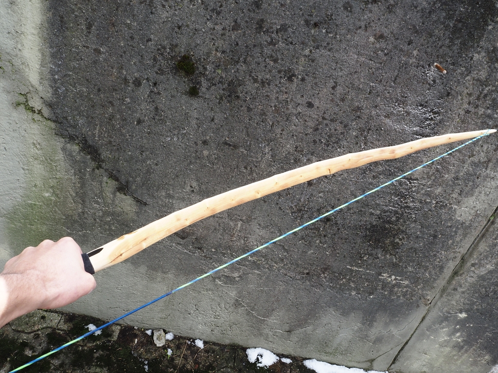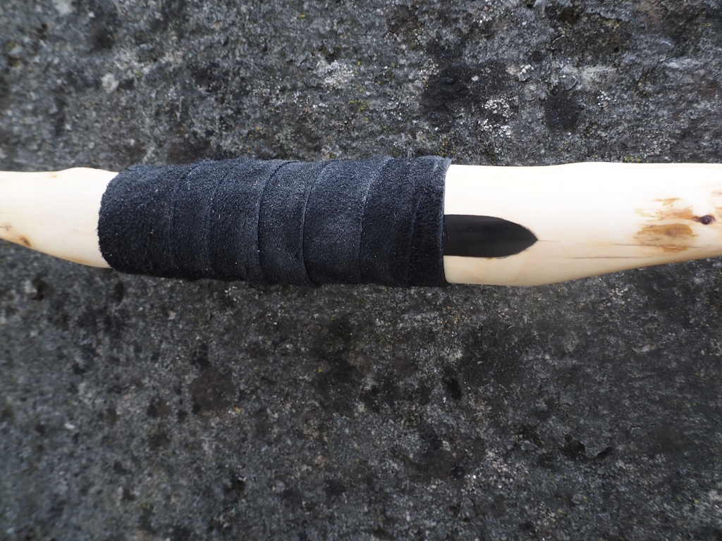 Material: Schwarzdorn, Griffleder Ziege, Arrowpass und Tipps Wasserbüffel, Sehne Dadcron B55 8 Strang
