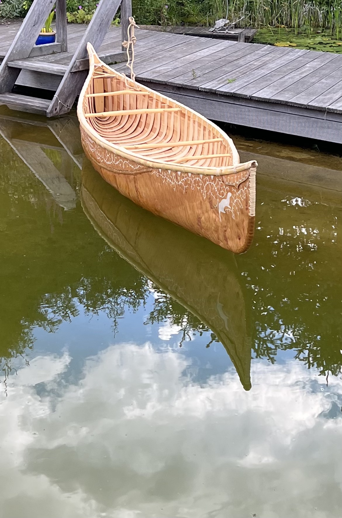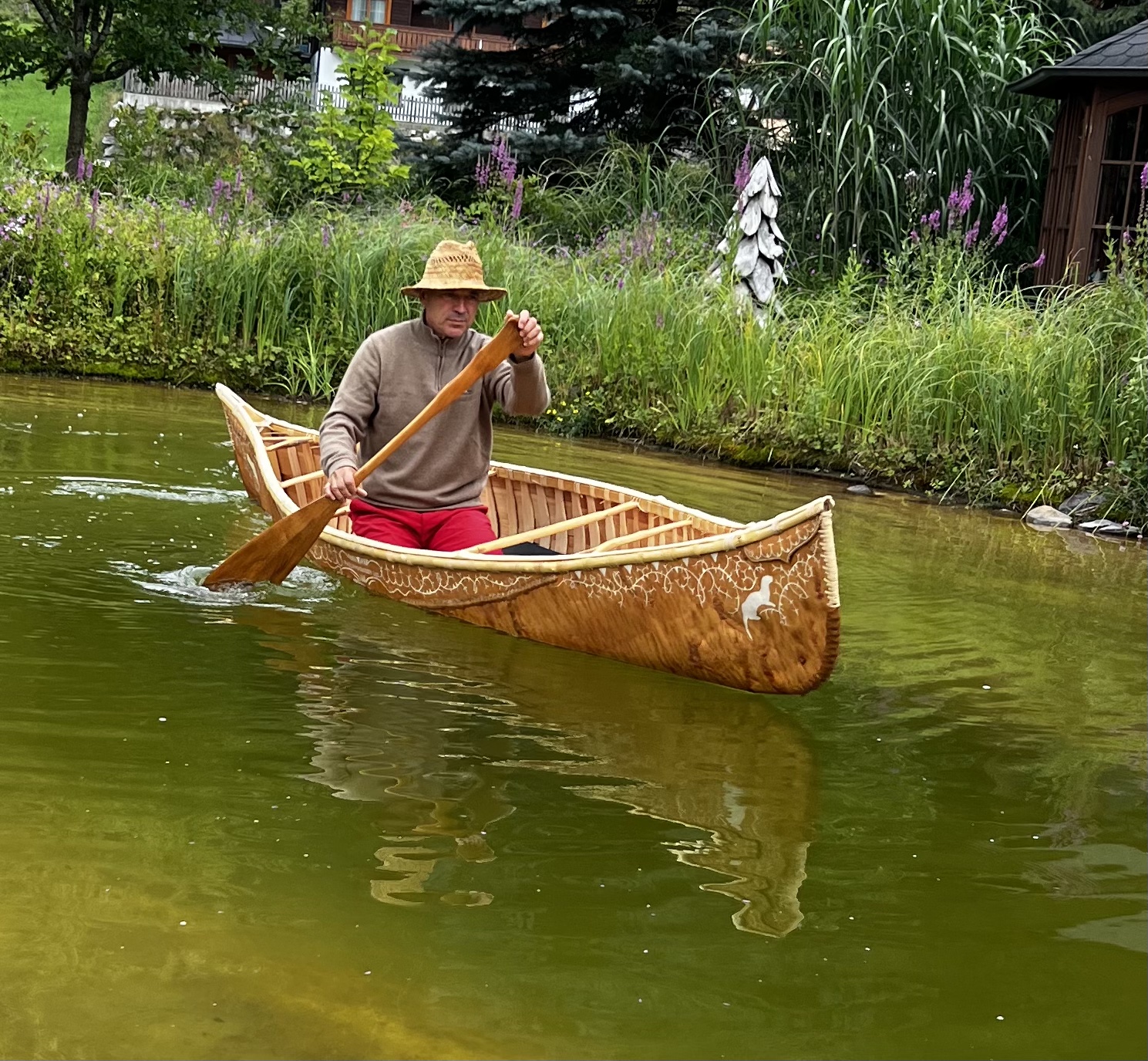 Ach ja, das Boot wiegt 22,8 Kilo, ein echtes Leichtgewicht (jetzt nach dem Aufbringen von Leinölfirnis ein Kilo mehr, da Leinöl immer weiter oxydiert, wird das Boot mit der Zeit immer schwerer)
