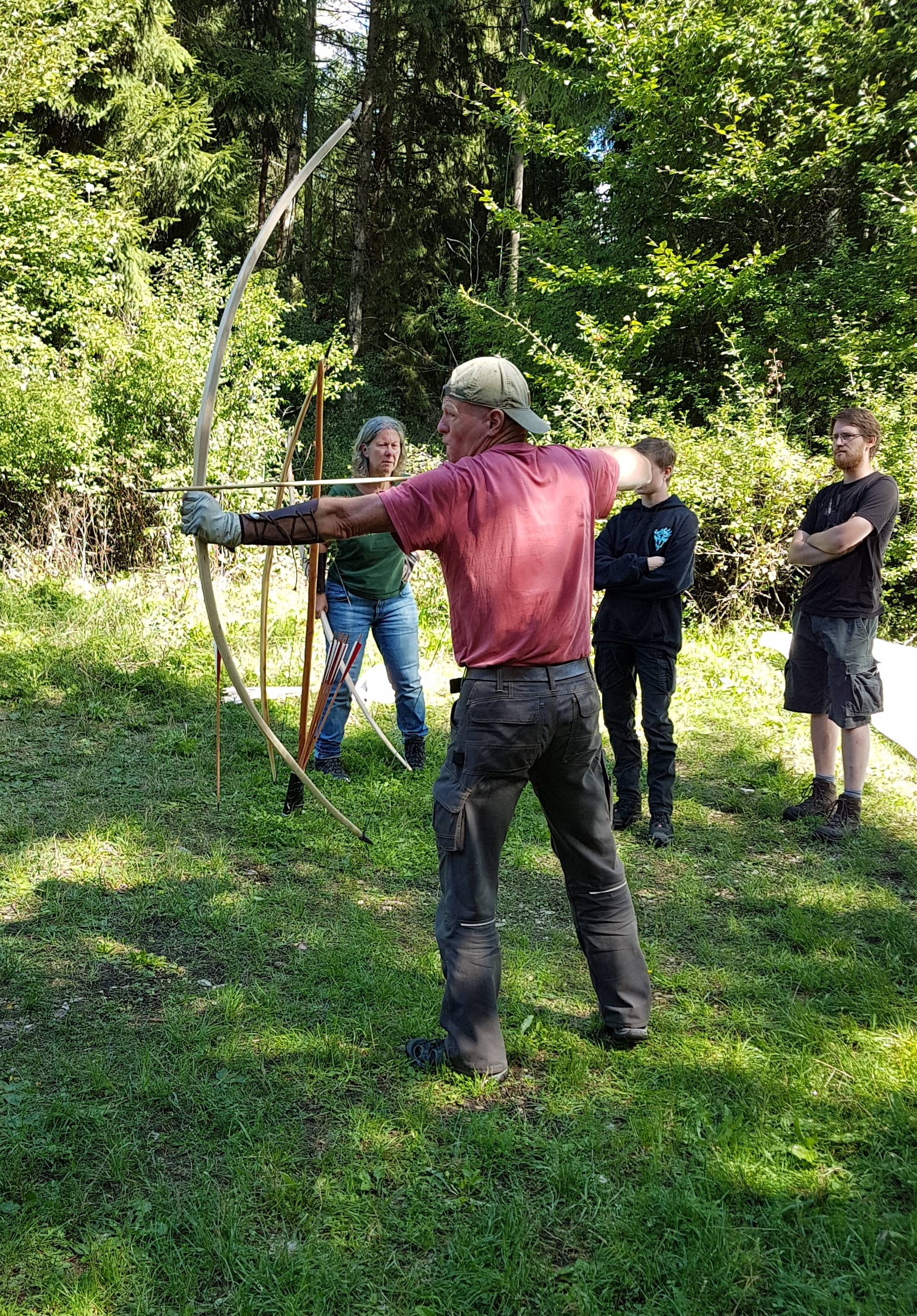 Neumi beim Flight-Schießen: Tom hatte aus den Resten seines Linden-Bogens einen Atlatl gebaut und der musste natürlich auch getestet werden. Sinnvollerweise gleich mit großem Kaliber in Form eines Quarterpounders: Und noch zwei Bilder: