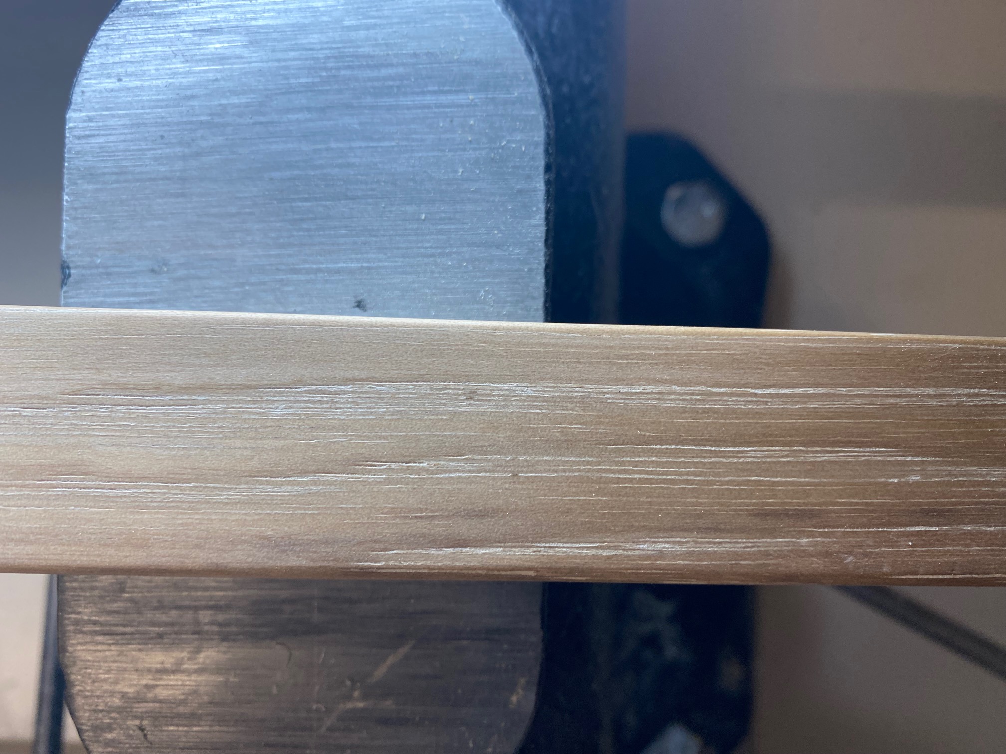 Die Belastung beim Bogen ist vom Rücken zum Bauch wenn viele Ringe in dieser Richtung verlaufen ist das halt riskanter als wenn sie seitlich aus dem Bogen rauslaufen. Du kannst bei Hickory auch den Rücken Schleifen. Ich hab auf den Bildern nur einen Längsriss gesehen, das andere sind Werkzeugspuren im Frühholz die kannst du noch mit 240 Schleifpapier glätten. Den langen Riss etwas Epoxy darauf und mit Fön hineinlaufen lassen und weitertillern. Und nicht mit mehr als 50# anziehen. Zeig mal ein Bild mit niedriger Standhöhe.