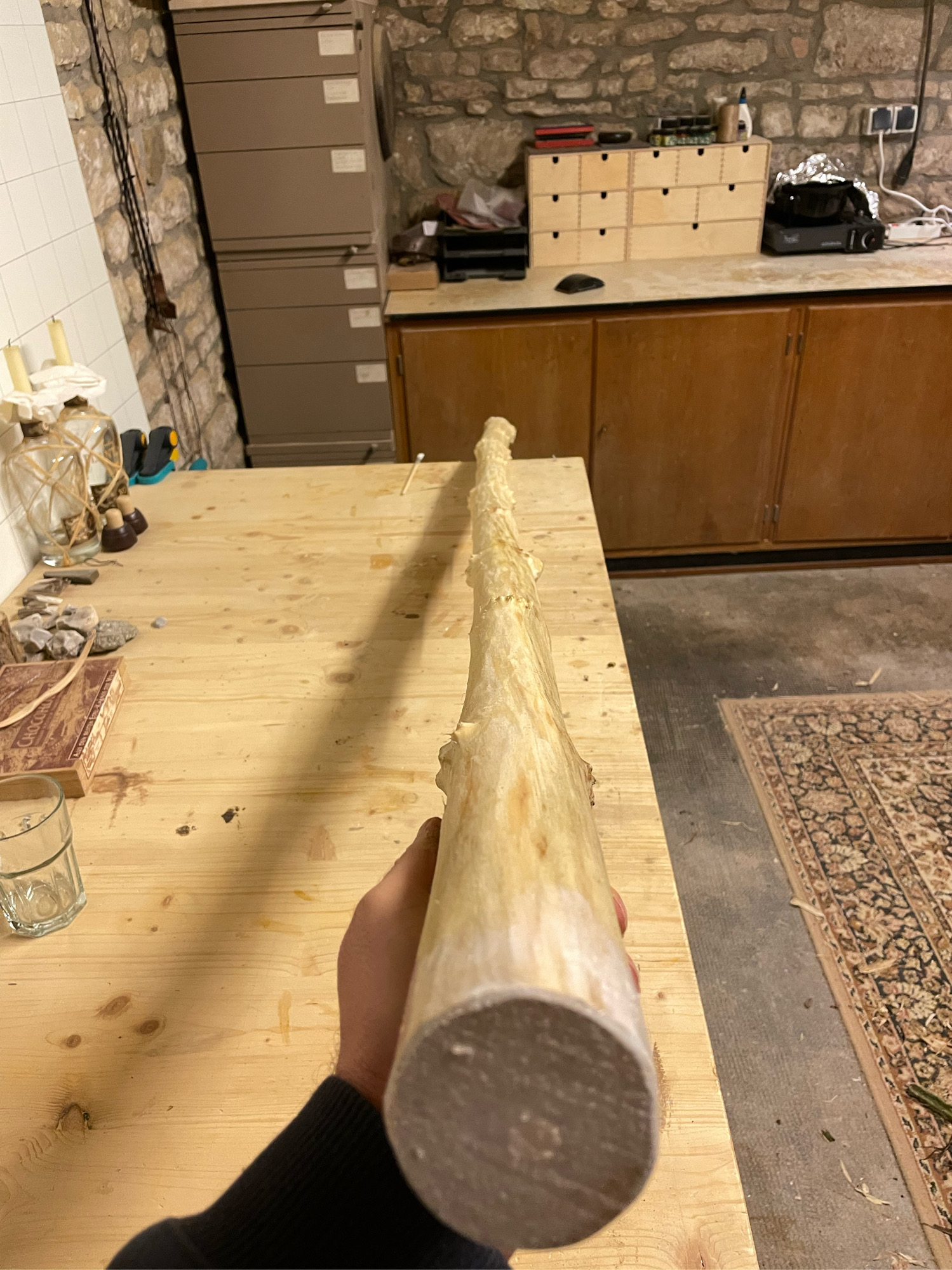 Habe ihn heute auf die Mitte des Markkanals freigelegt und das Mark bis zum Griff raus gekratzt und die Enden versiegelt.