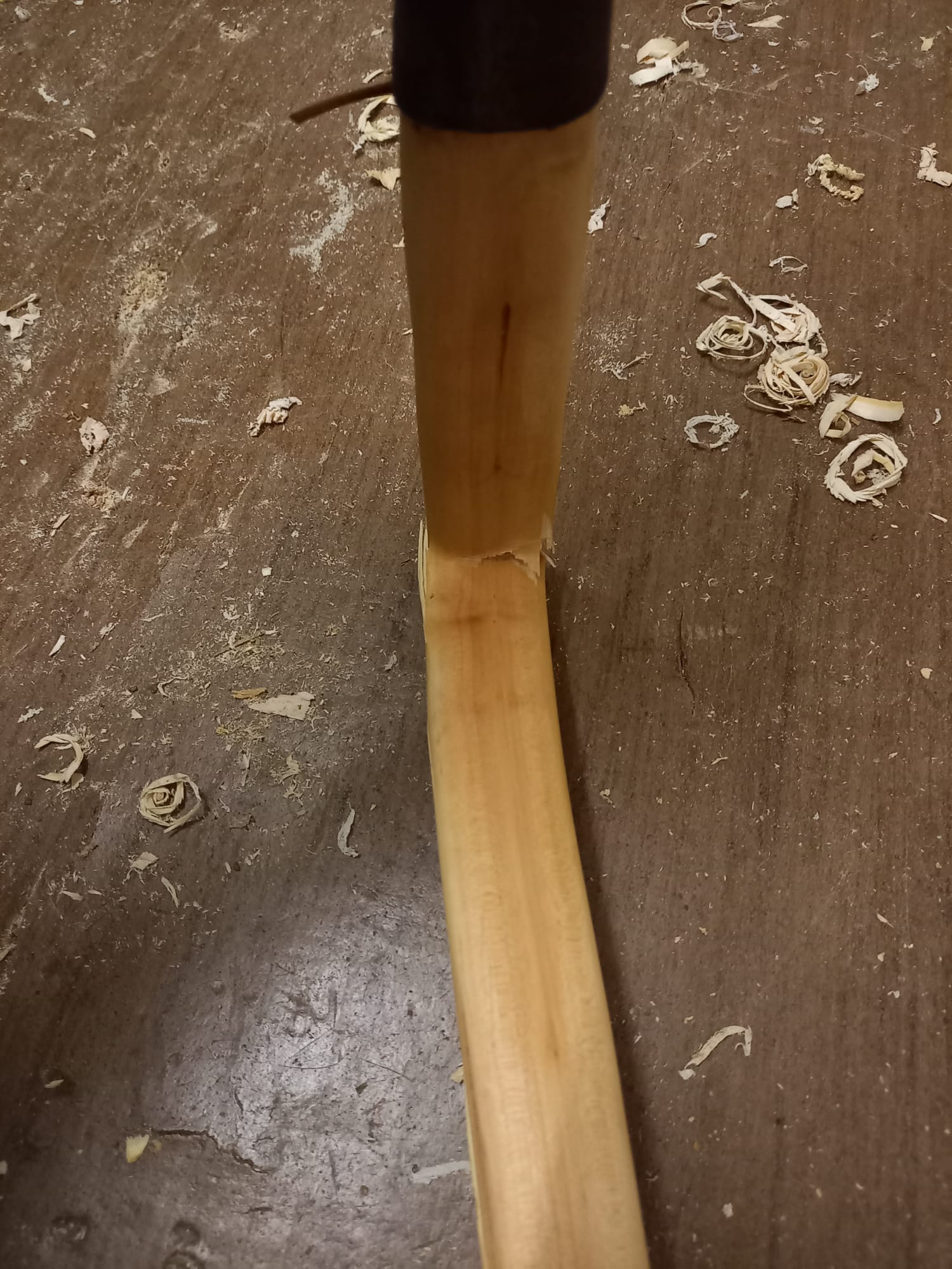 hab in den letzten Wochen mein Hartriegelbogen mit 50# fertig gemacht und als der Bogenbaukollege Bogenbas letzte Woche zu Besuch war und ich den fertigen Bogen erneut schießen wollte ist das passiert