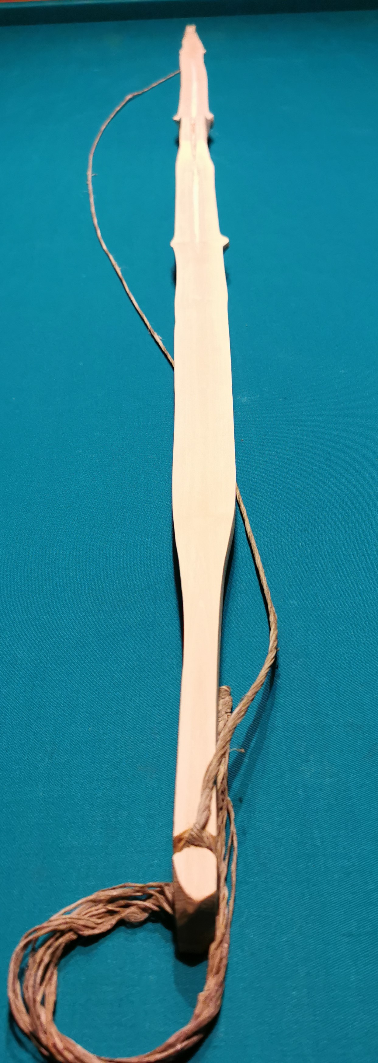 Der Stave ist von Nocke zu Nocke 177 cm lang, Die Wurfarme sind vom Griff Richtung Nocke in den ersten 2/3 38 mm breit, im letzten Drittel sollen sie sich zur Nocke auf 10 mm verschmälern, Zur Zeit haben sie ca, 15 mm an den Tips.
