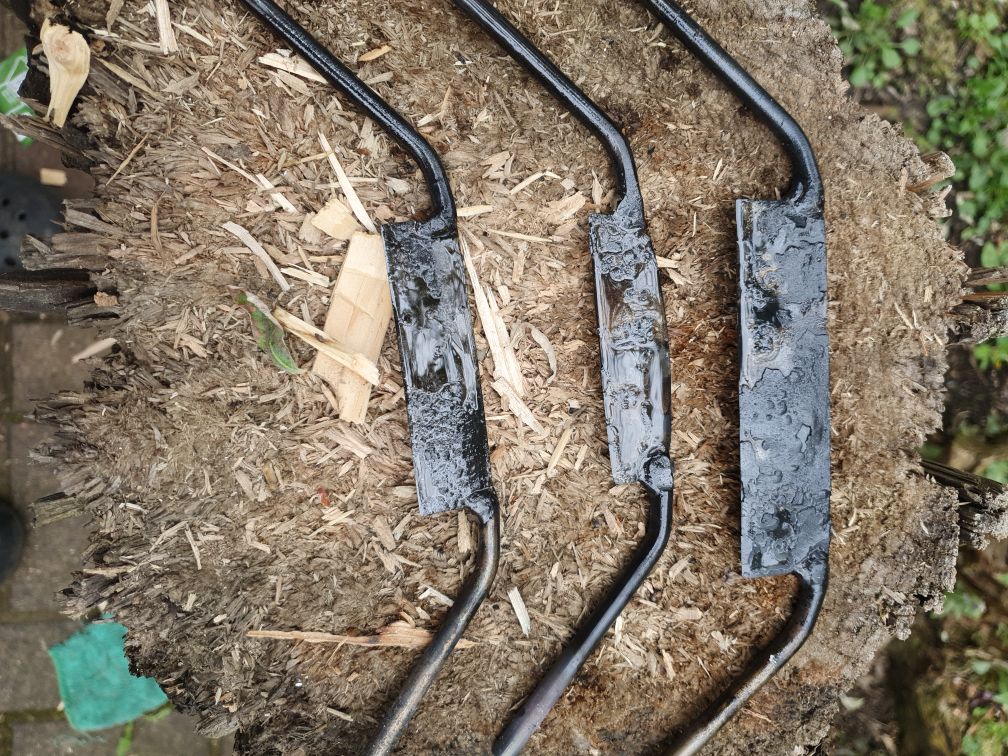 Nein, ich hab ja nix geschmiedet. Nur die Form rausgeschliffen und die Henkel angeschweisst. Falls der Stahl mal hart war, danach war er's definitiv nimmer