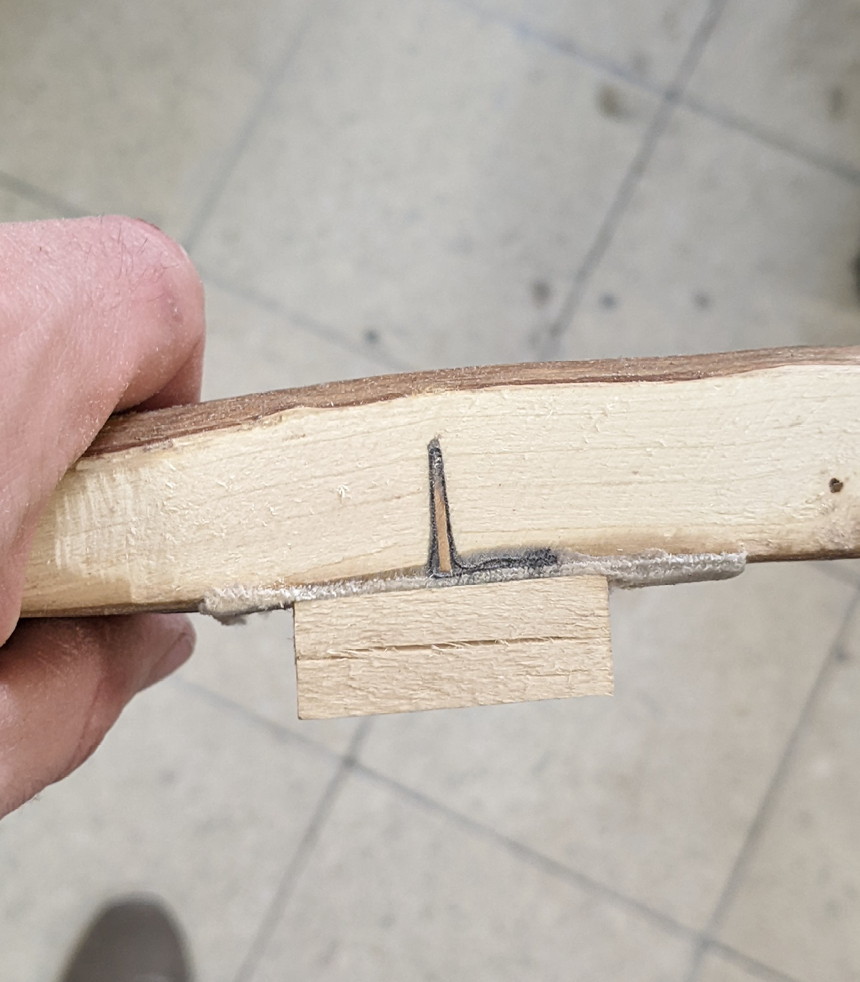 Die Frage hat sich erübrigt. Ich werde aus den Bruchstücken des anderen Bogens den Keil machen.