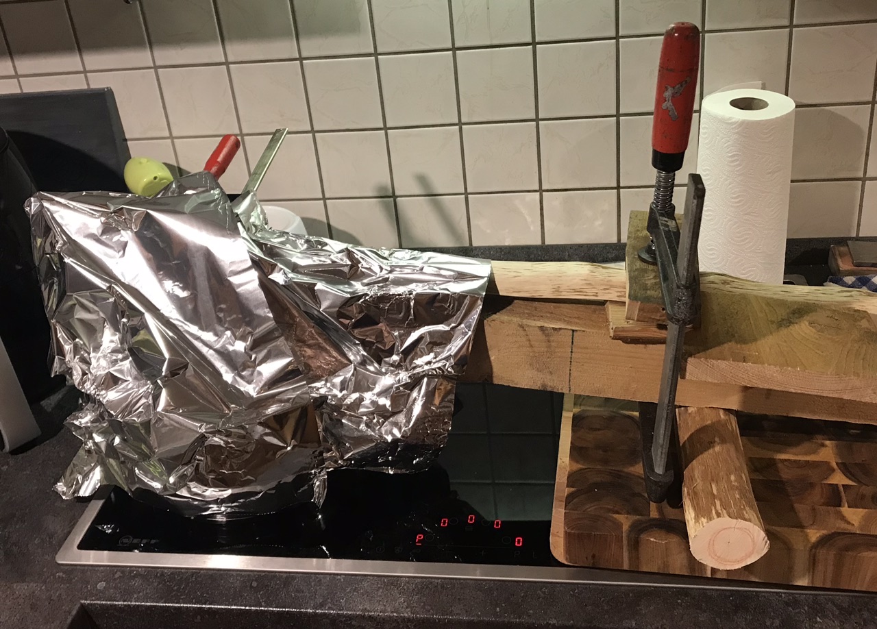 Wollte das überm Topf mit Alufolie machen, eigentlich nur das was er sich beim trocknen verzogen hat wieder rückgängig.