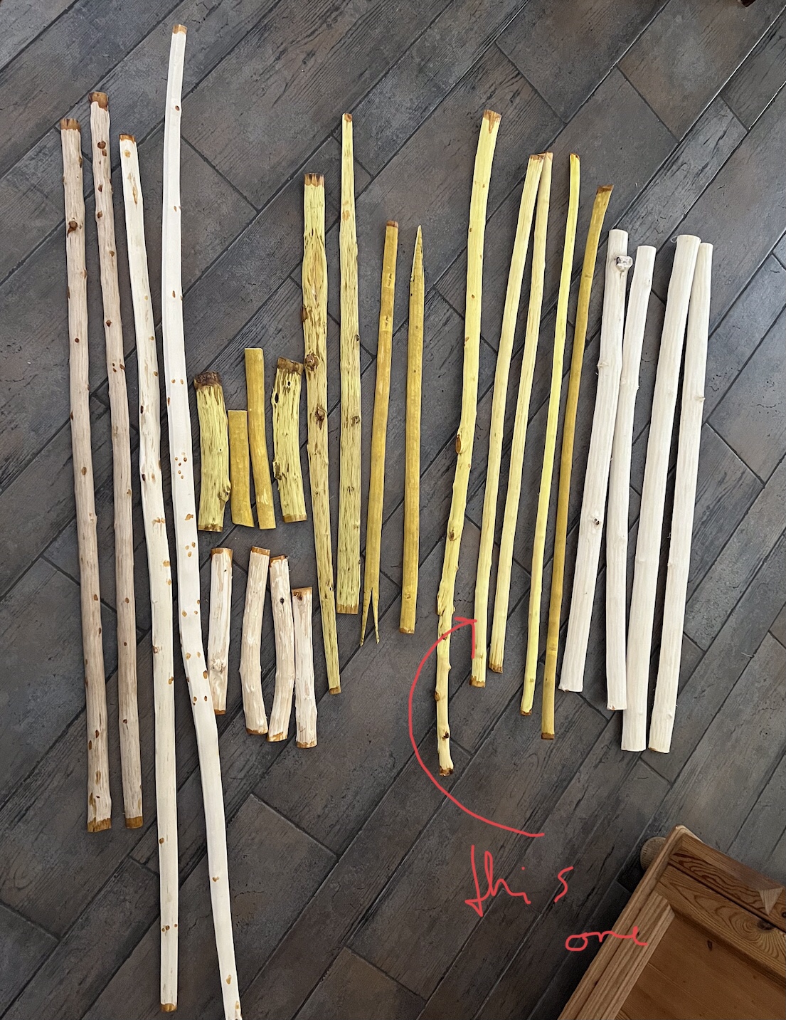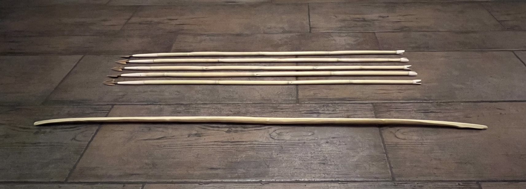 Heute NM habe ich begonnen an einem kurzen Berberitzen Stück herum zu schnitzen und am Ende ist eine kurze Indianerflitsche herausgekommen, Sehnenlänge 93cm , noch jenseits von 50 Pfund, Grobtiller ist fertig, nach dem Abspannen Null Set, bin sehr positiv überrascht von Berberitze und dieses Stück kommt jedenfalls an Osage ziemlich nah heran, so kurze Bögen schießt man etwas anders, entweder Ishi oder Yurok Style oder mit stark gewinkeltem Bogenarm, der Pfeil muss deutlich höher als normal eingenockt werden, der Daumen der Bogenhand liegt am Bogenbauch, im Schuss kippt man den Bogen nach vorne. Auch beim Sehnengriff kann man experimentieren wegen des stärkeren Sehnenwinkels im Griffbereich. Wird ein schöner Rucksackbogen fürs Roving.