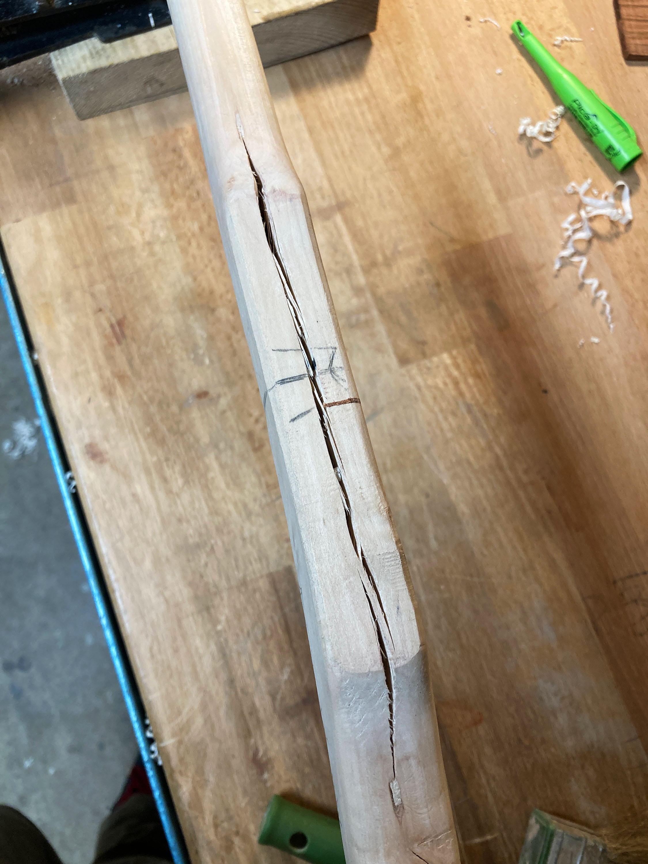 Den Faulbaum habe ich mental schon gestrichen, die Risse und die Faulstelle sorgen für ordentlich Demotivation. Außerdem habe ich nicht genug Schraubzwingen und keine Lust auf Epoxy-Gebapsche in meinem Zimmer - der Keller ist vieeeeel zu kalt.