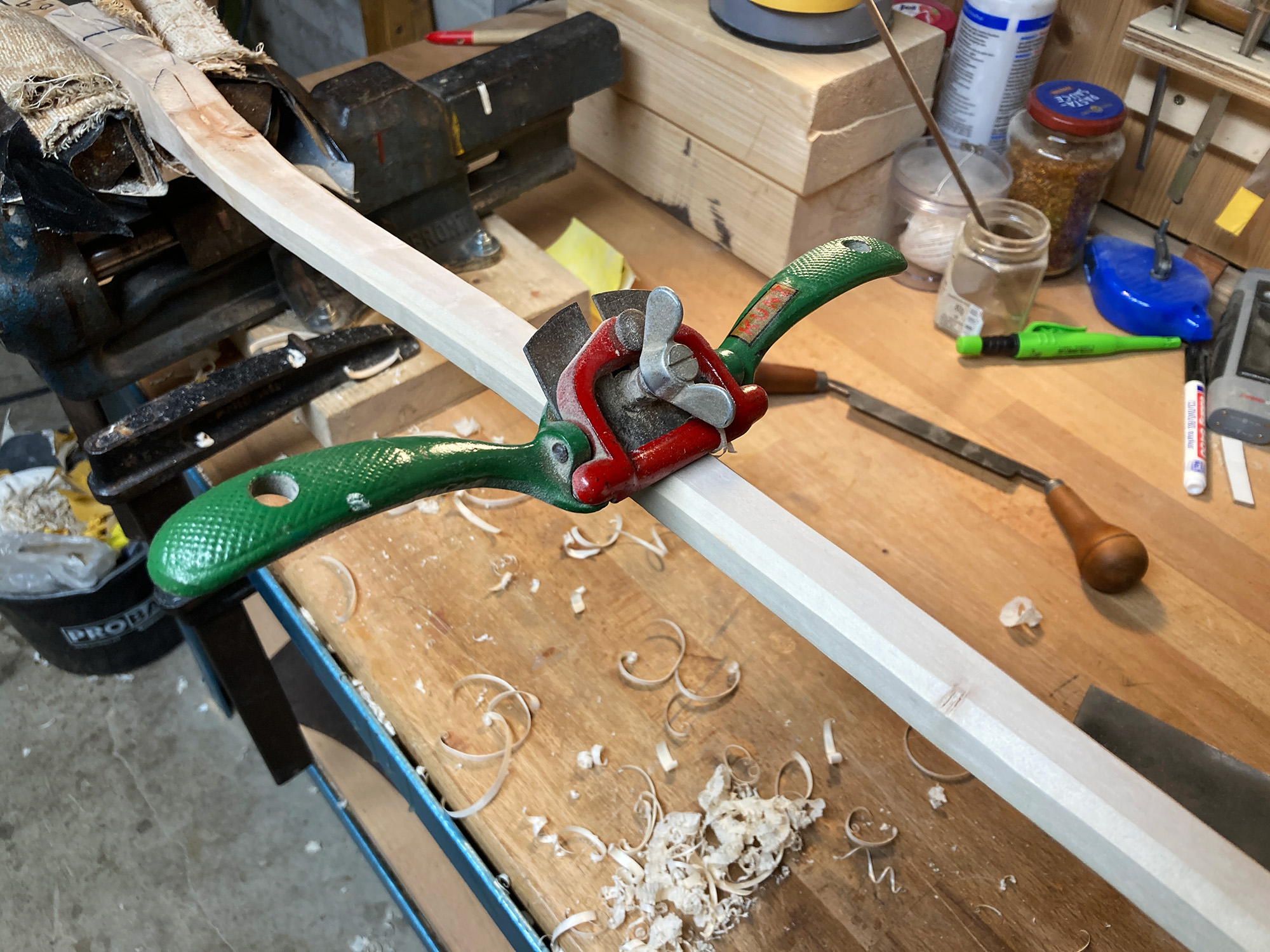 Beim Ausarbeiten des runden Profils war ich sehr froh über den alten Schweifhobel meines Großvaters - ein tolles Werkzeug -  das bisher vor allem viel rumhing.