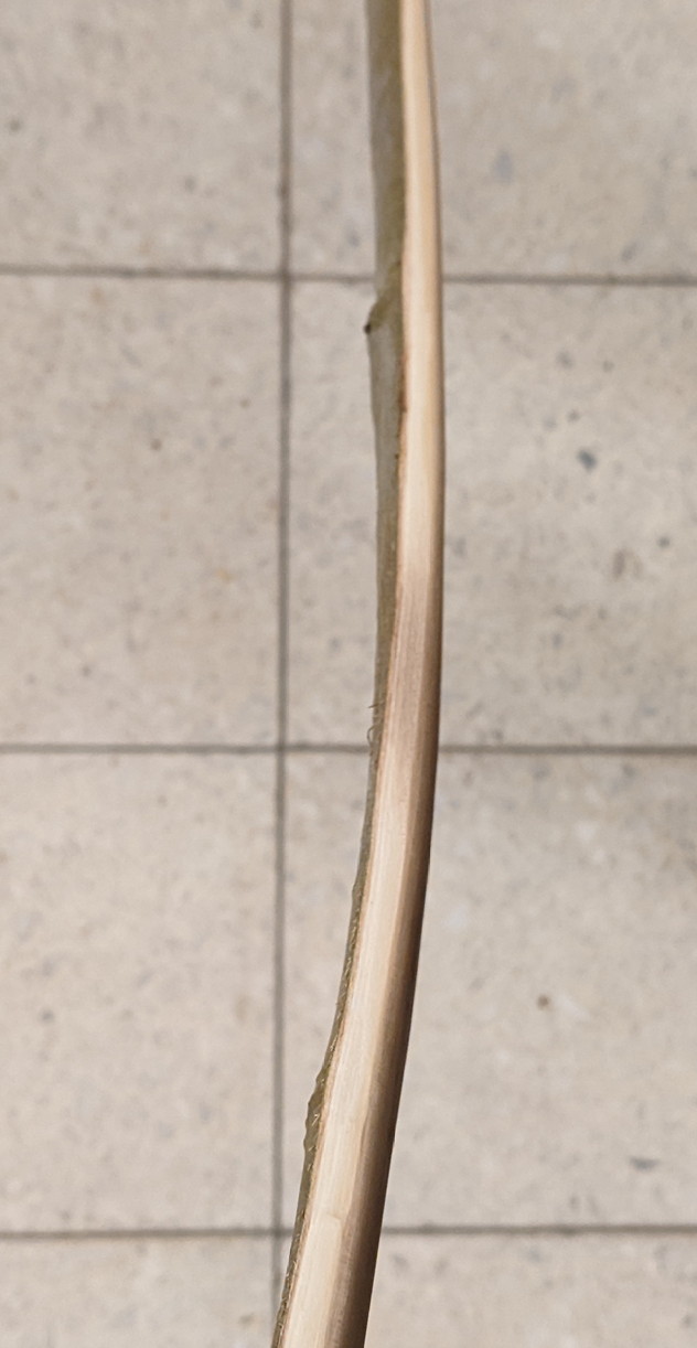 Prinzipiell glaube ich dass es ein guter Bogen ist, die Vorspannung ist gut für das geringe Zuggewicht. 29" Auszug hat er auch ausgehalten. Dabei ist die Rinde an einer Stelle mit einem ziemlich lauten Knacken gerissen, was mir für einen Moment einen ziemlichen Schrecken eingejagt hat :D