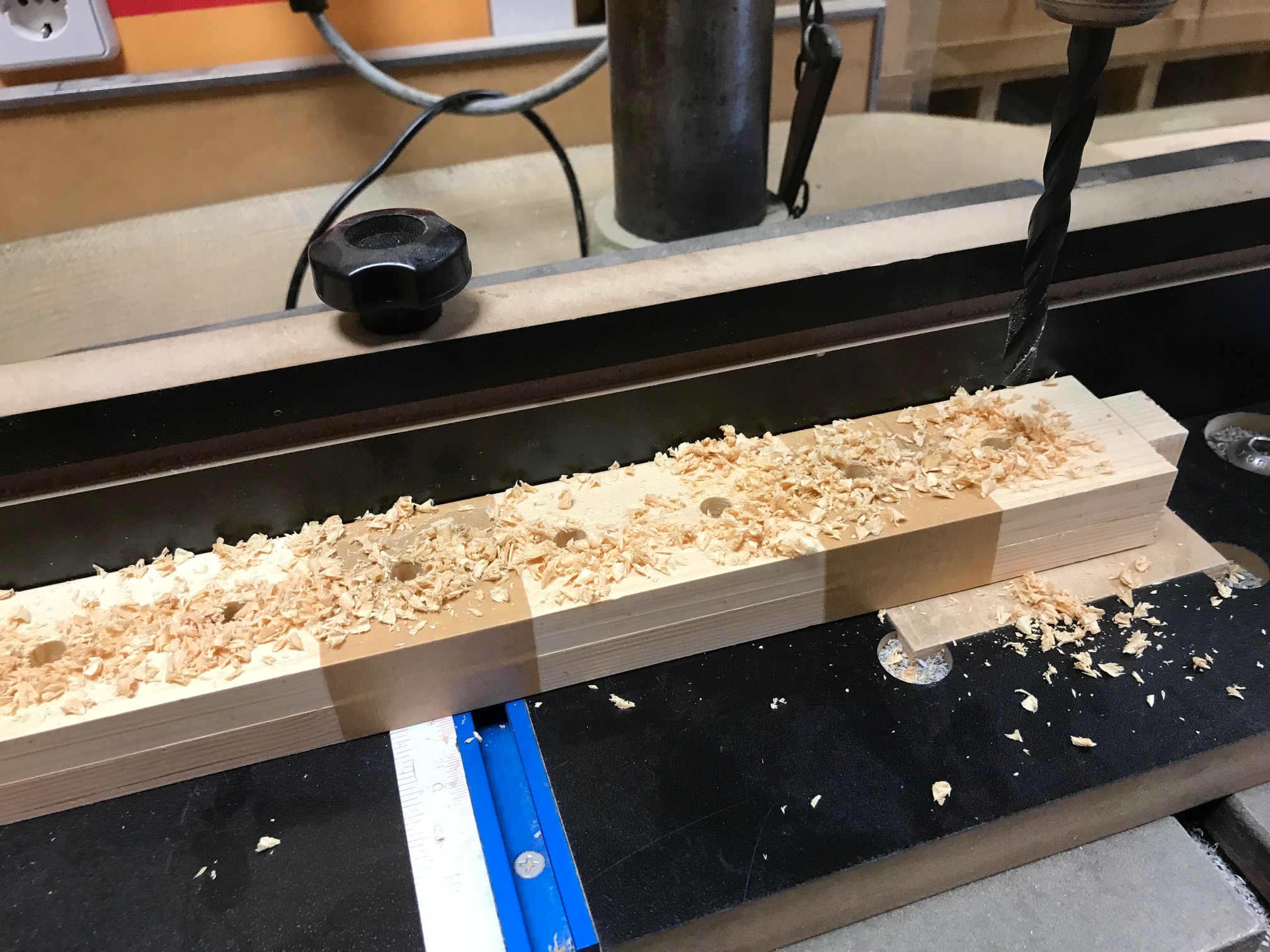 Es gibt ein paar neuralgische Punkte, an denen das Langholz brechen könnte, daher habe ich diese unsichtbar mit Stahlstiften verstärkt (eingebohrt und verkittet).
