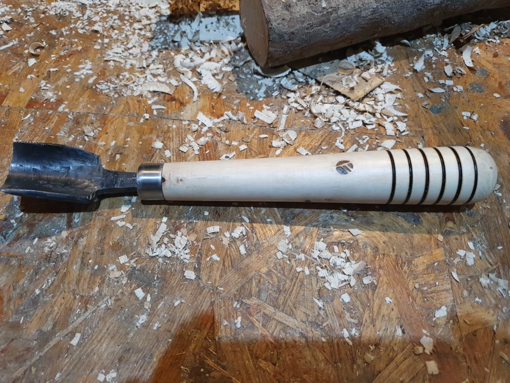 so der Renner ist, um die Hoehlung zu schnitzen. Also hab ich einen Hohlbeitel mit passendem Radius und moeglichst
