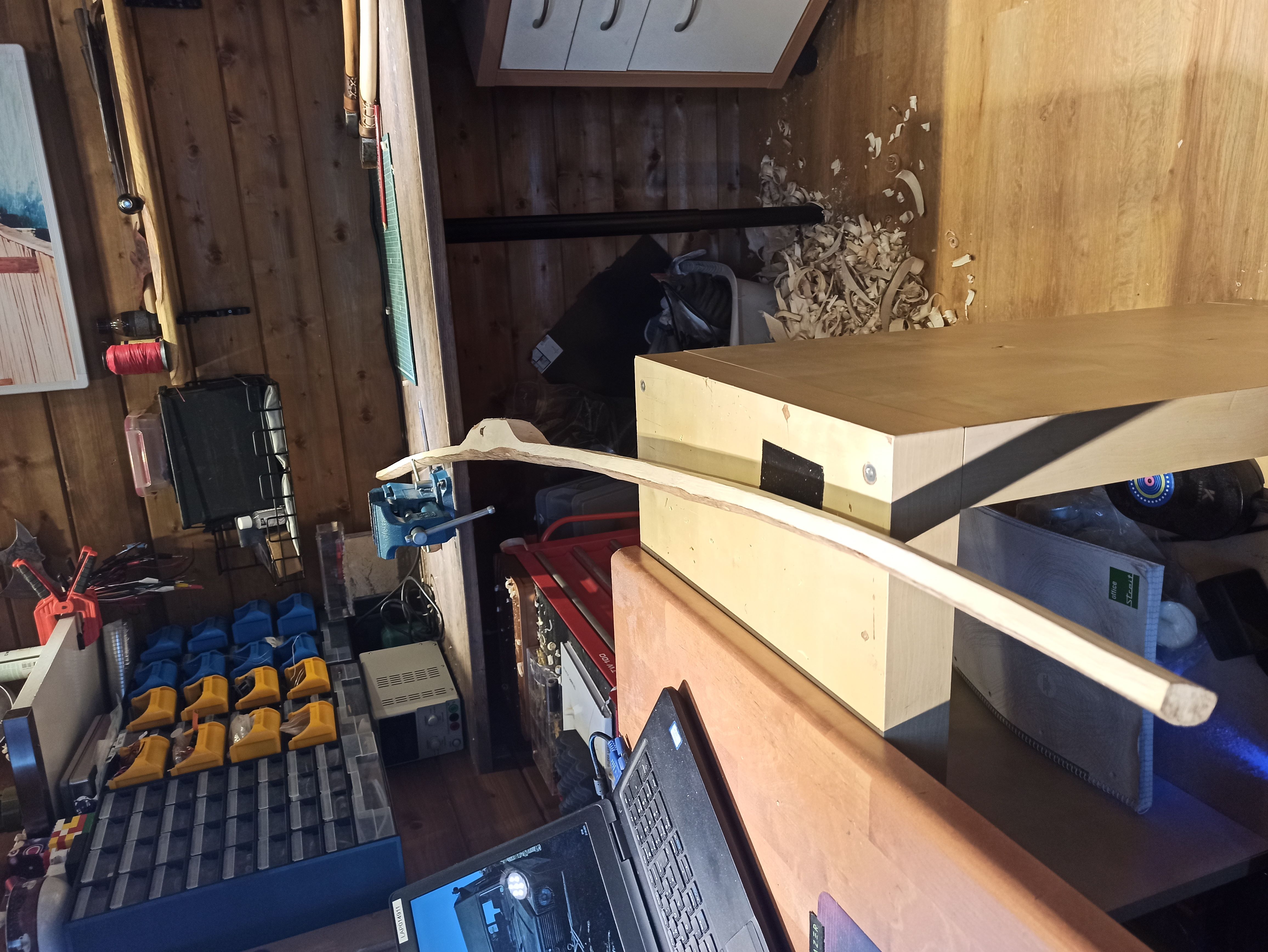 Die Kanten abrunden, Dickentaper seh ich da noch nicht, wie gesagt fade out 2 cm dick, Enden 1,4 cm und dann im Bodentiller kontrollieren ob er sich schon biegt und dann Sehnenkerben.
