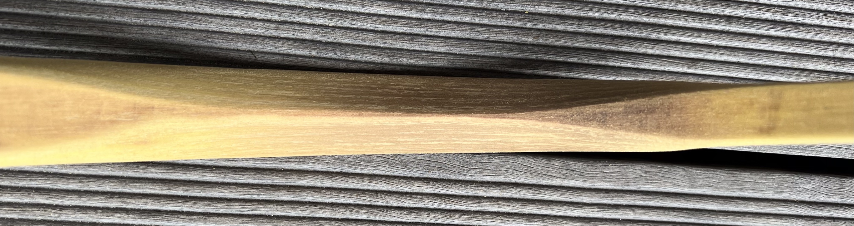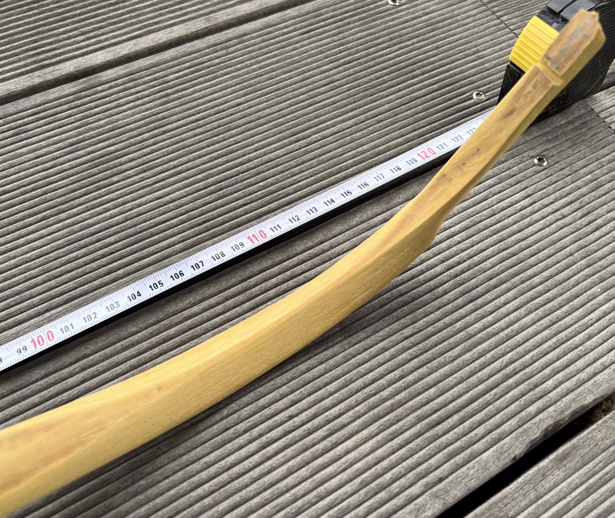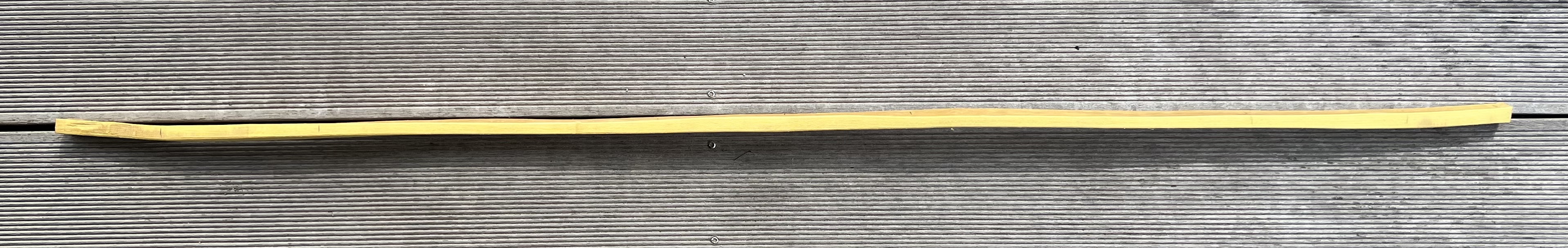 Frage: was würdet Ihr aus so einem 130cm langen und 3cm breiten Osage Orange Reststück bauen? Snaky, konkave und lästige konvexe Stellen am Rücken, 30 Grad torquiert. Die Ringe fein mit relativ viel Frühholz.