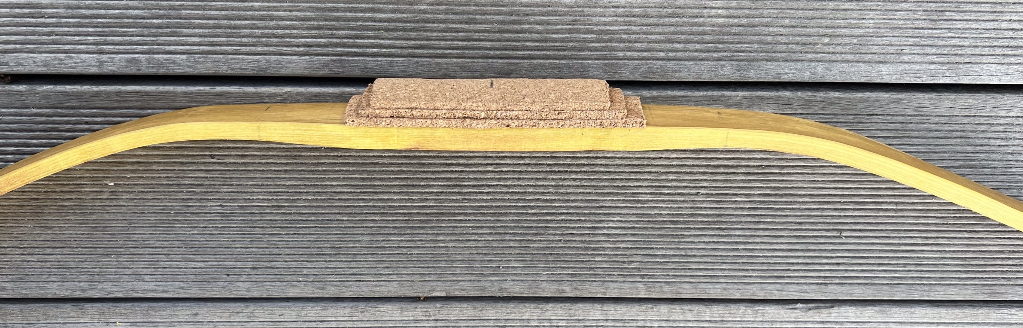 Sal fast rechteckig und etwas länger um mehr Hauptbiegezone zu erhalten, Kasan dreieckig und etwas kürzer, Bogen ohne Sehnenbacking aufgespannt, provisorische Sehnenbrücken