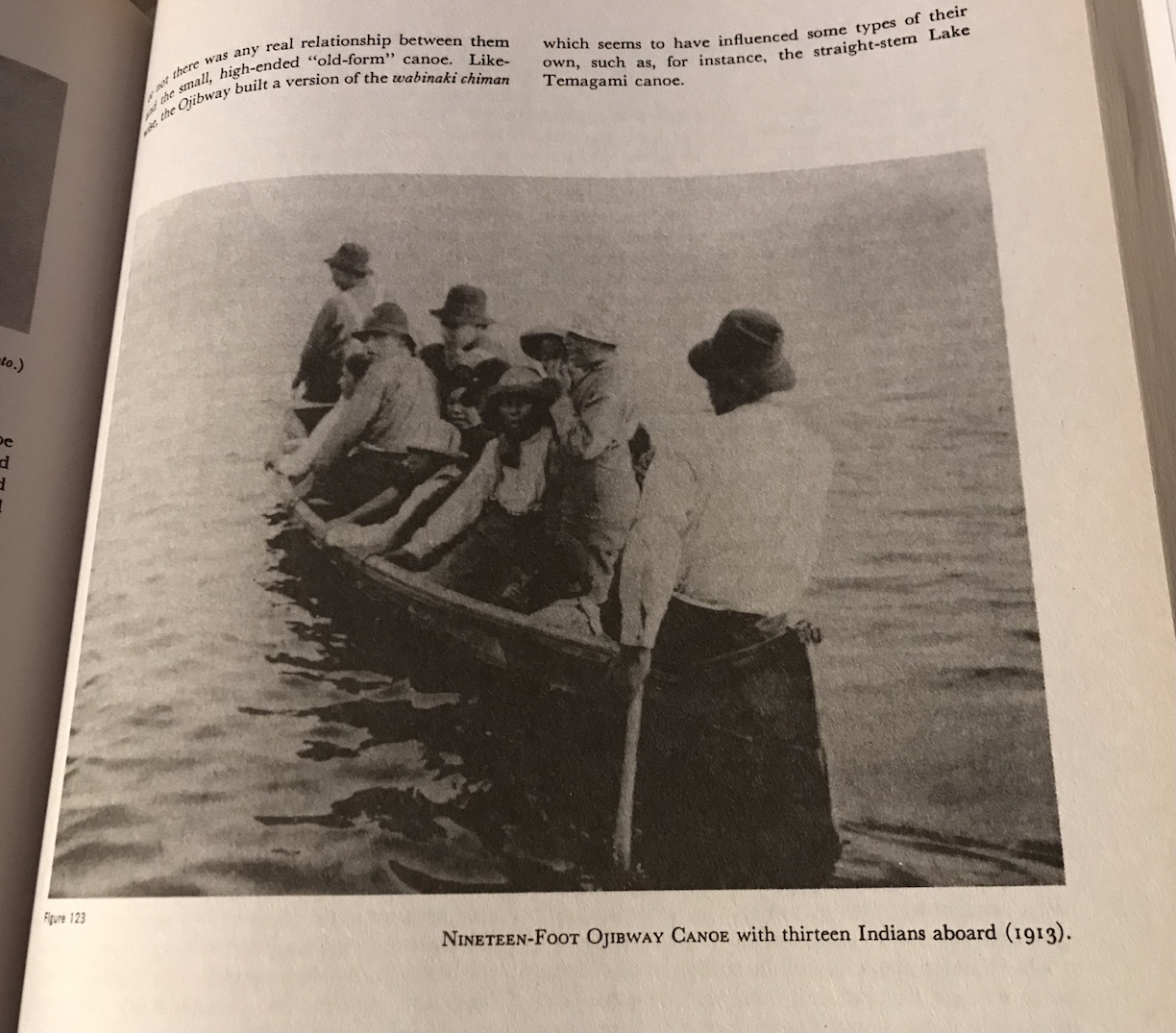 Das Boot mit beiden Indianerinnen ist mein Birkenrindenkanu Nigig. Das Foto mit den 13 Personen habe ich auch gefunden. Das Boot ist nicht 15 Fuß sondern 19Fuß lang