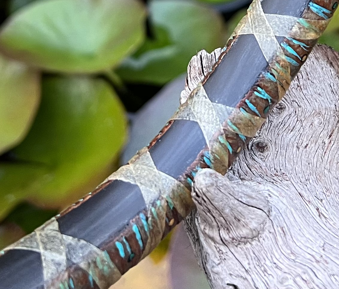 Hartriegel, Wasserbüffelhorn, Straußensehnen, Ziegenrohhaut, Kalbsledergriff gewachst