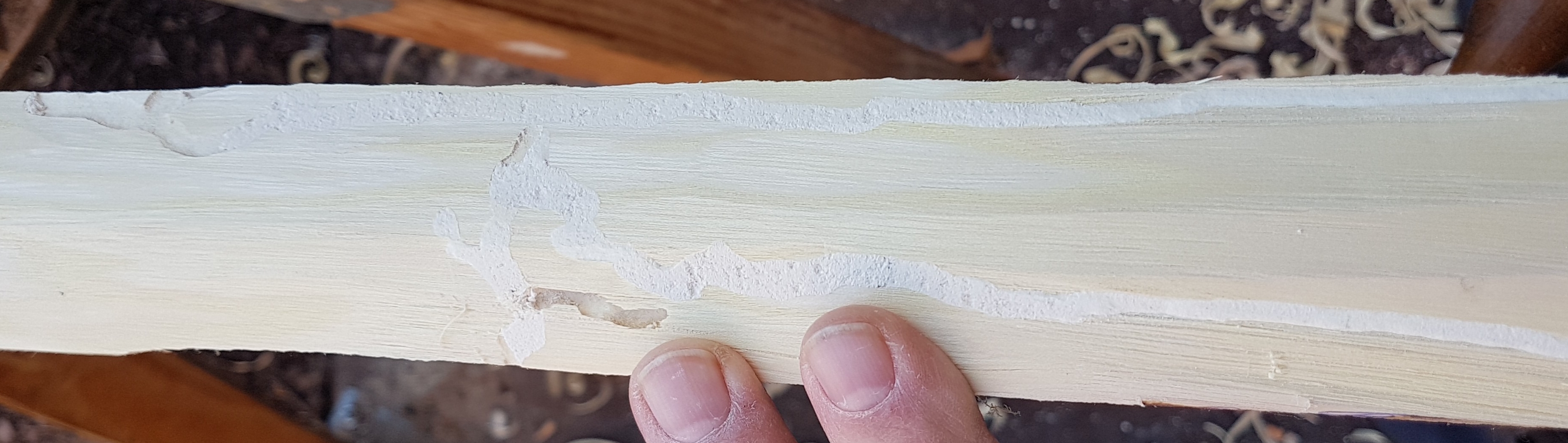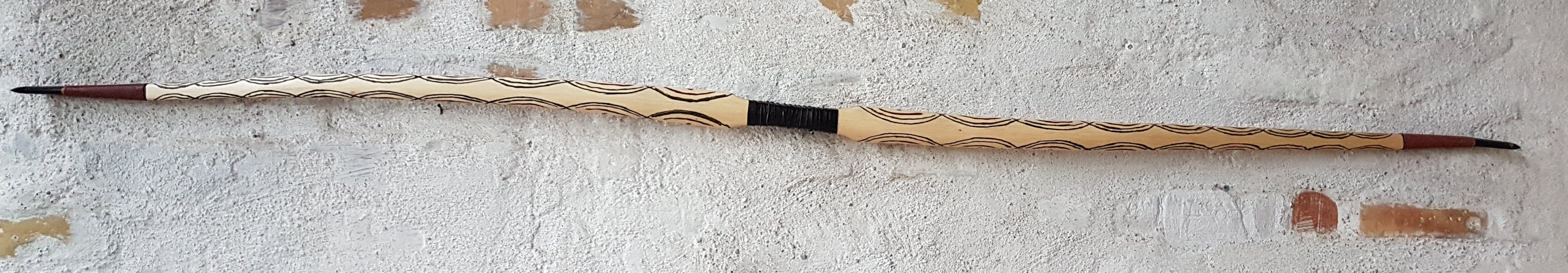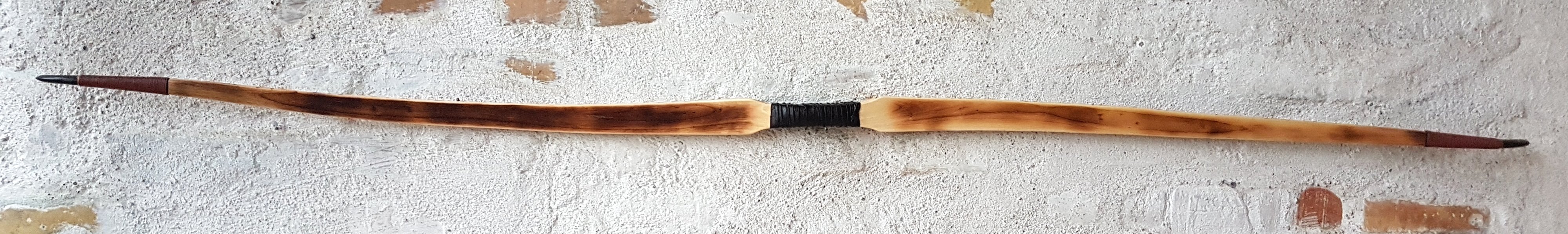 Hier noch ein Bogen zu Sylvester. Seit langem wieder mal ein Selfbow. Der stave war stark von kleinen Holzfressern befallen, ein paar Löcher sind noch im fertigen Bogen - praktisch der komplette Splint war zerfressen. Der Bogen war seit mind. einem 3/4 Jahr fast fertig und hat geduldig gewartet bis ich nun endlich die passende Idee für die Bogenenden hatte.