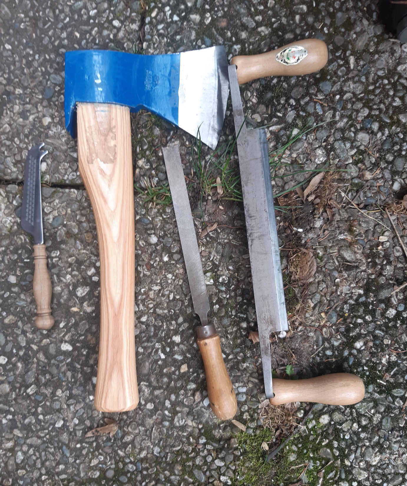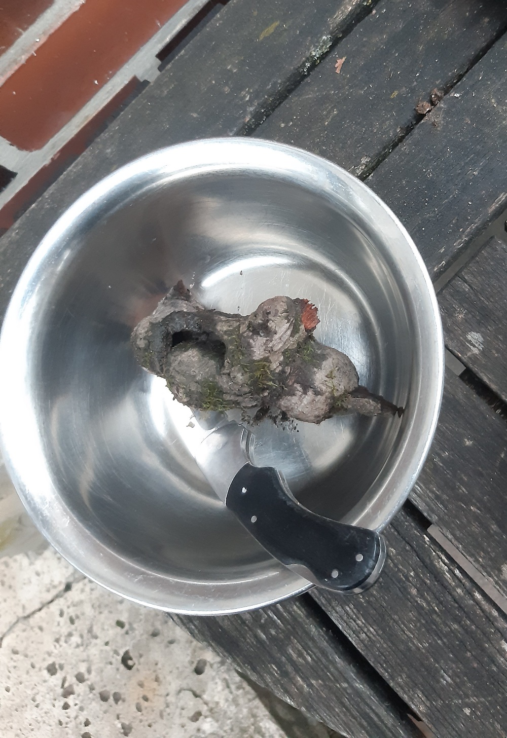 Das verwendete Werkzeug: Beim Hund bespaßen, noch an der Wurzel einer Buche ein Hexenei gefunden. Vielleicht bringe ich das auch noch ein? Werde es morgen mal kochen und Schälen.