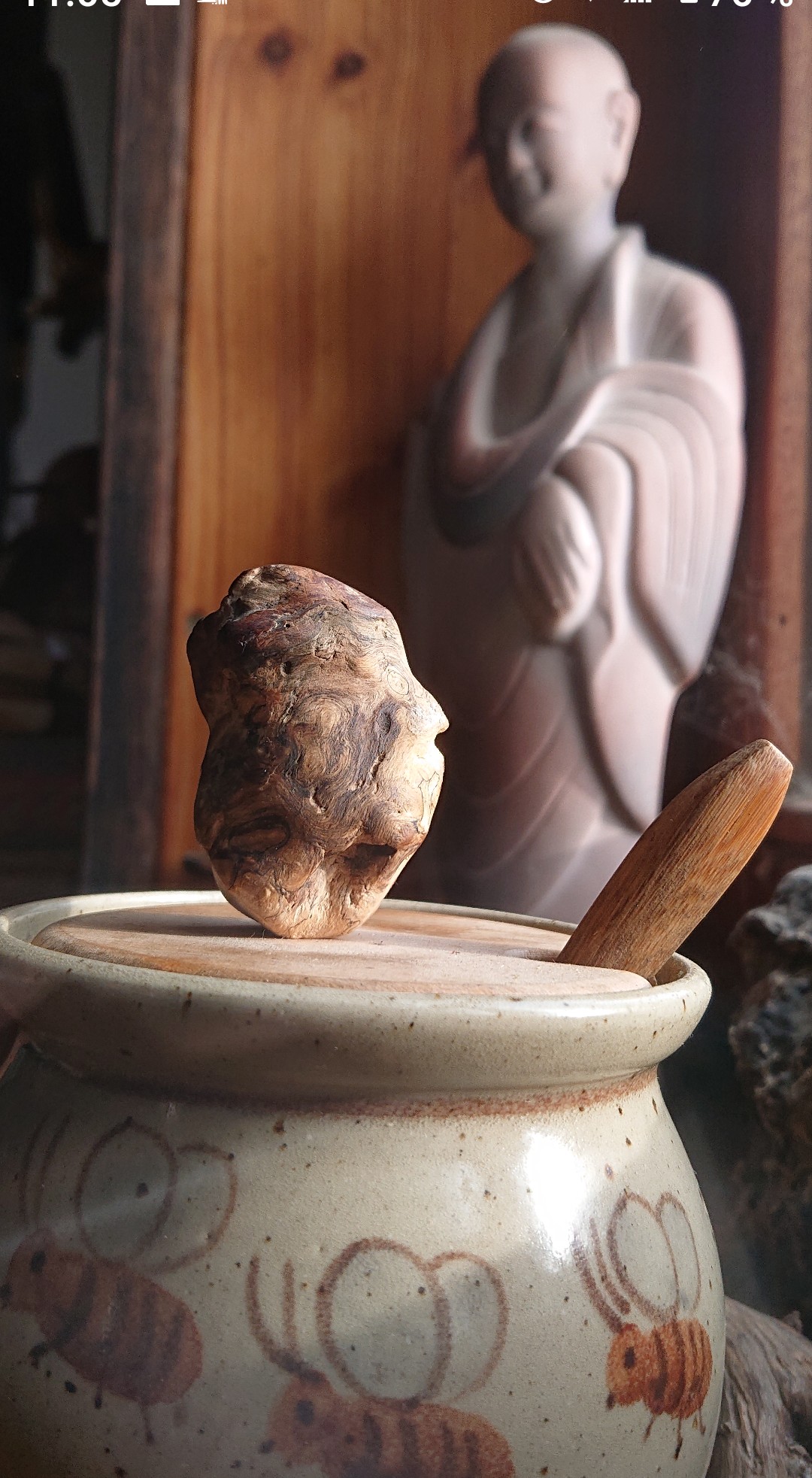 Als Michel in der Hütte das gefunden Hexenei/Baumperle Verwachsung vom Baum gezeigt hat,
