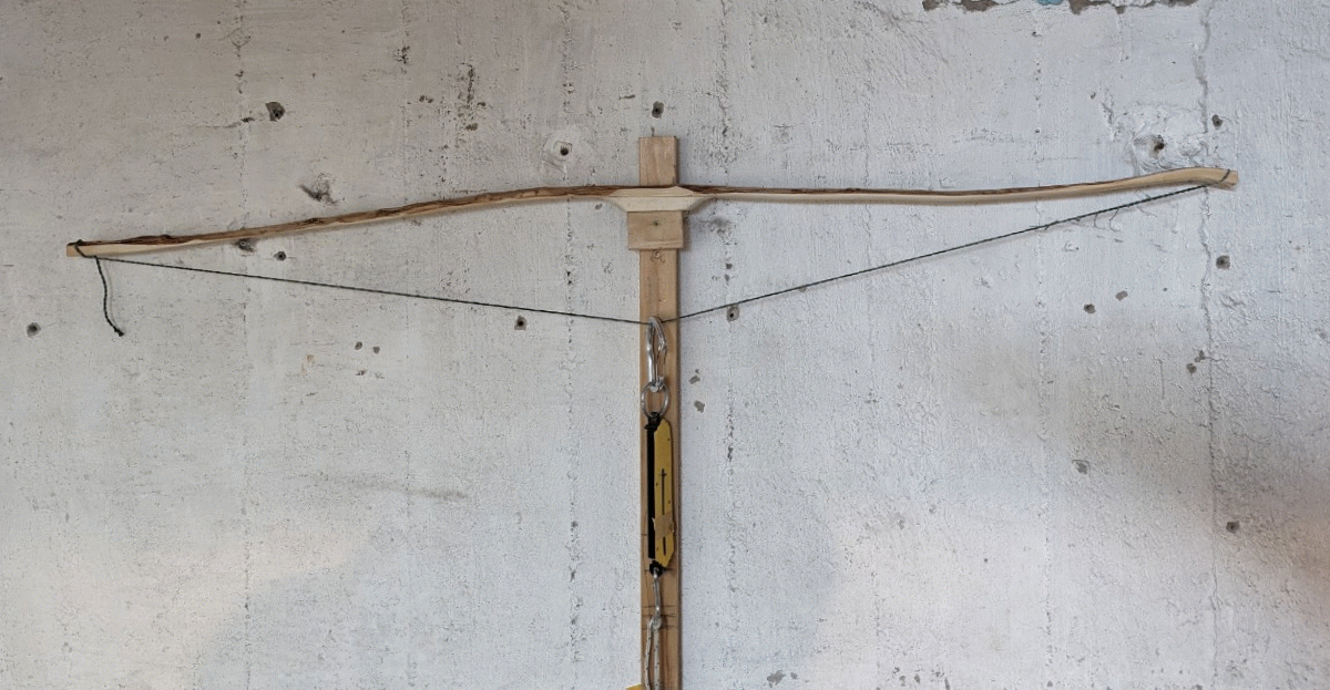 Erstmal ein Auszugsdiagramm machen und sehen wie das Ende aussieht. Oder schiessen. Solang die Sehne drauf bleibt, spar ich mir die Biegerei und wenn der Bogen wirklich kurz ist, gibt's auch andere Mittel und Wege. Vielleicht bau ich in dem SAP da noch was dazu.