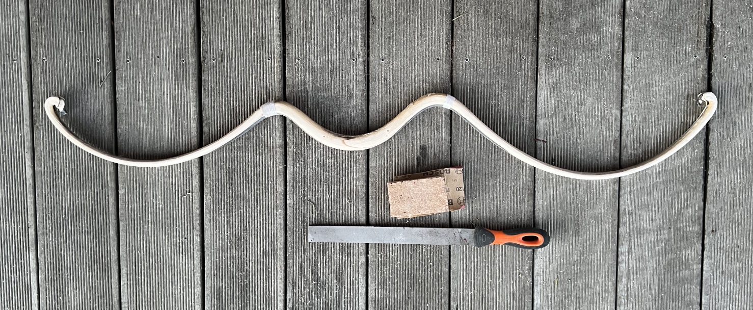 Heute Tillerbeginn. Zuerst Facettentiller mit der Feile zur Formgebung. Dann erstes Aufspannen und Herantasten an die Standhóhe (13,5cm). dann weiter Tillern, Anzeichnen mit dem Bleistift, mit Feile und Schleifpapier abtragen, ab 20 Zoll entsteht beidseits ein kleiner Bauch (rote Pfeile). Ich möchte im Vollauszug aber gerade Wurfarme. An den Linien werde ich entsprechend Material abtragen und hoffe auf mein gewünschtes Tillerbild zu kommen. Derzeit knappe 50 Pfund bei 20,5 Zoll Auszug. Die ersten Pfeile mussten natürlich auch schon fliegen. LG Stephan